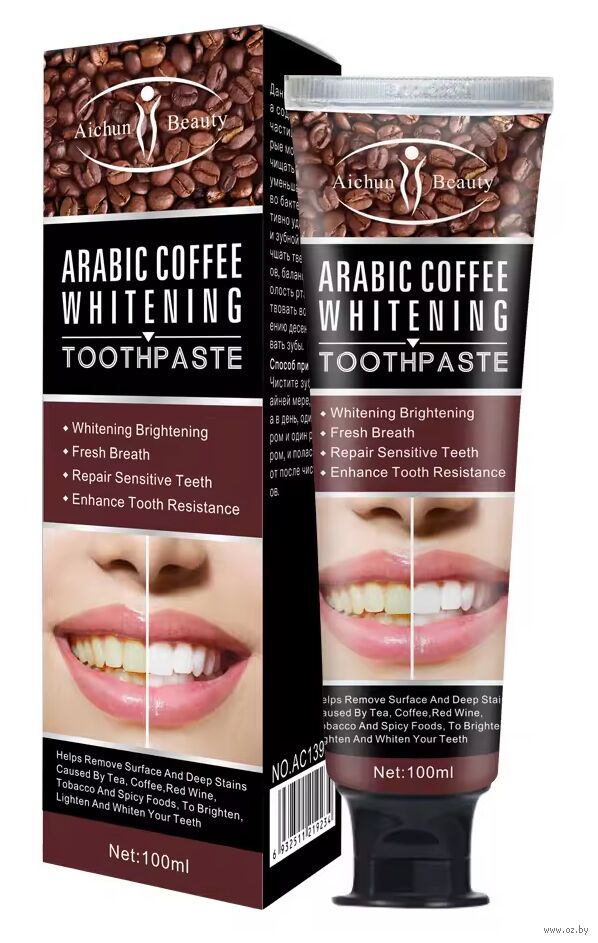 Отбеливающая противовоспалительная зубная паста с экстрактом кофе.