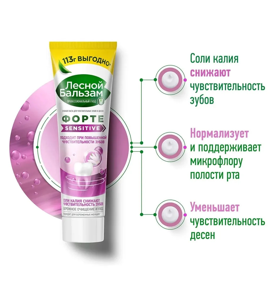 Зубная паста Лесной бальзам ФОРТЕ SENSITIVE – это средство для гигиены полости рта, созданное специально для чувствительных зубов и десен.
