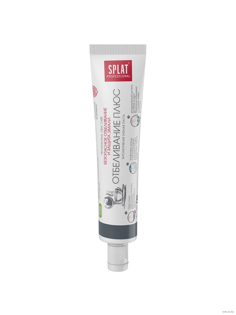 Зубная паста SPLAT Professional "Отбеливание Плюс" (WHITE PLUS) со фтором ухаживает за зубами и безопасно отбеливает их благодаря уникальному чистящему комплексу Sp.White System. Натуральный фермент папаин и высокомолекулярный компонент полидон эффективно расщепляют налет, способствуют сохранению белизны. Ионы калия снижают повышенную чувствительность зубов. Фторид-ионы эффективно защищают от кариеса.