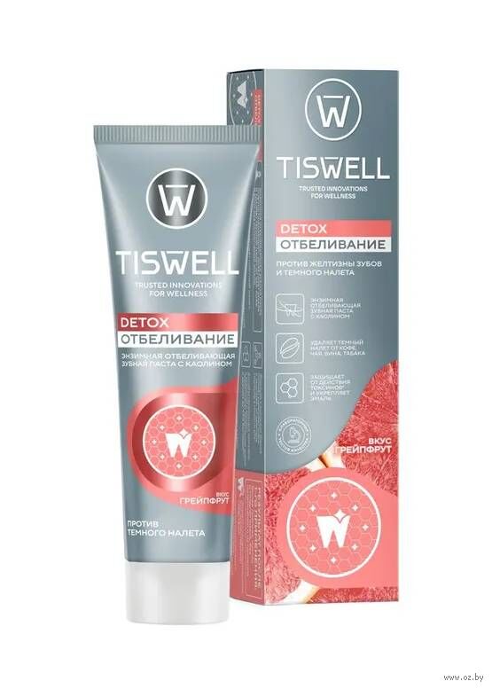 Зубная паста отбеливающая энзимная Tiswell со вкусом грейпфрута – это качественное средство нового поколения от желтизны и темного налета. Она обеспечивает зубам комплексный уход, Detox отбеливание, защищает от действия токсинов в полости рта.
