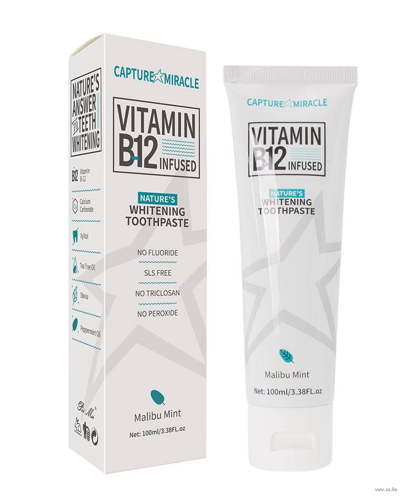 Зубная паста с витамином B12 создана для возвращения здоровой белизны зубов. Содержит кальций, ксилитол, масло чайного дерева, освежающую перечную мяту и витамин В12.