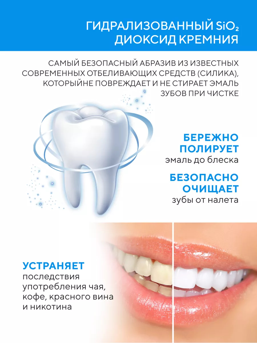 Зубная паста обеспечивает комплексный уход за полостью рта, изготовлена на основе современного высококачественного абразива диоксида кремния (силики) бережно очищает, не стирая эмаль зубов.