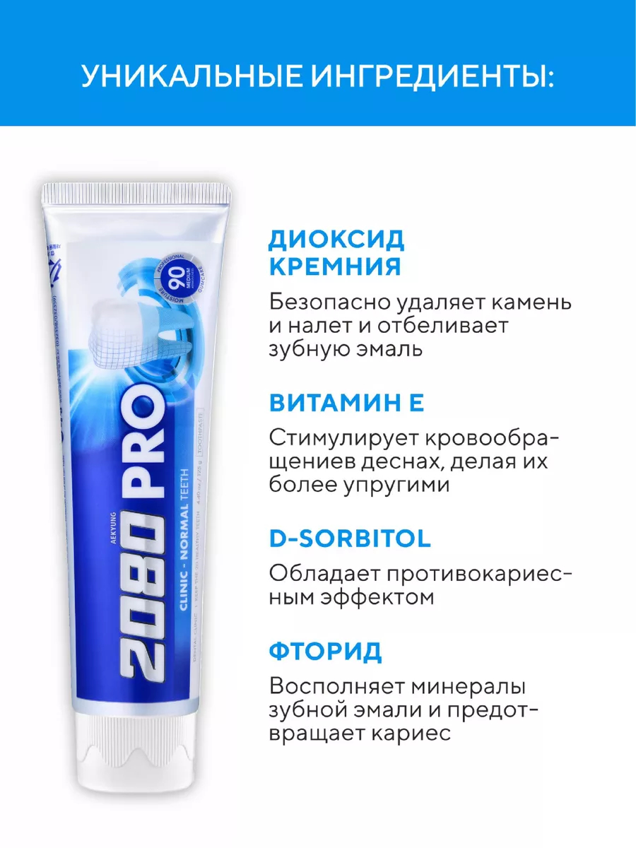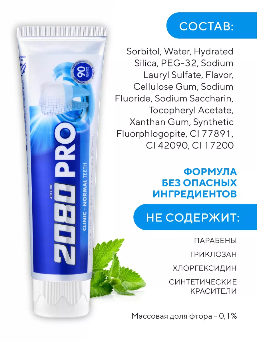 Чистите зубы тщательно, желательно после каждого приема пищи, но не реже двух раз в день или по рекомендации врача.Состав