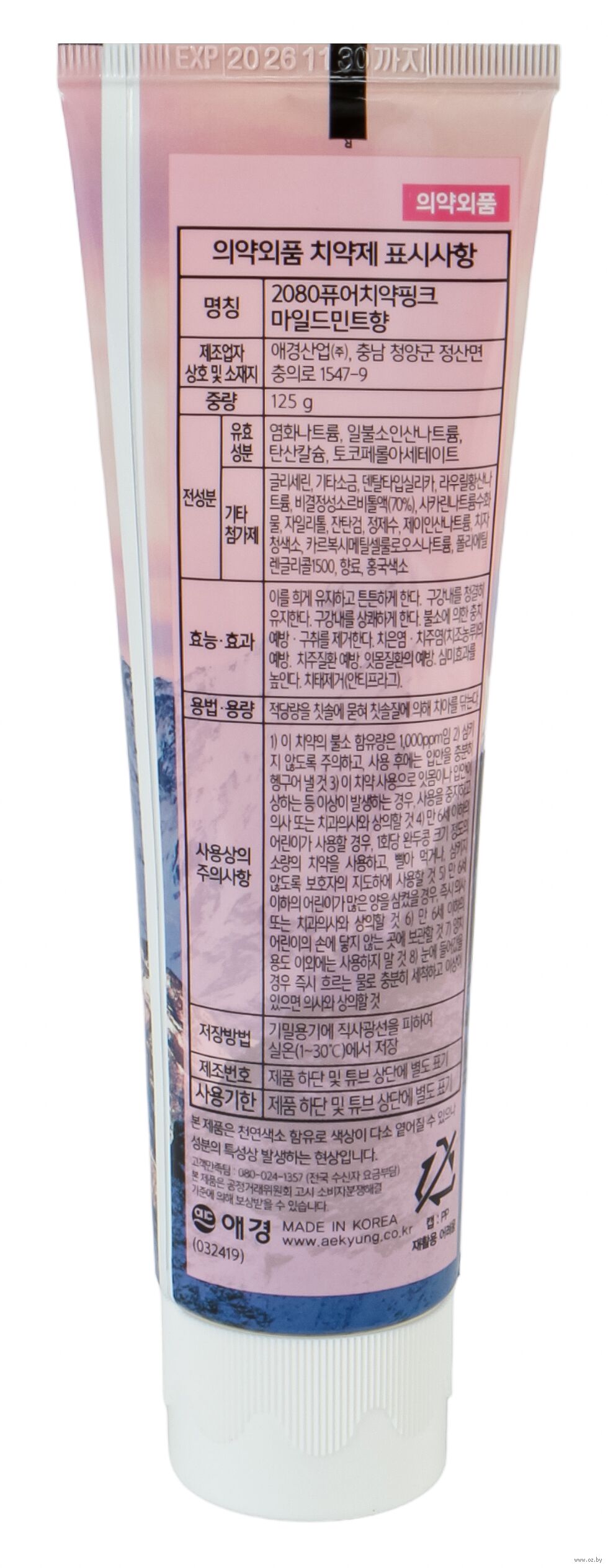 Purified Water, Dental-Type Silica, Sodium Chloride, Sodium Fluoride, Pyridoxin Hydrochloride (Vitamin B6), Liquid Sorbitol(Non-crystallising), Sodium Lauryl sulfate, Flavor, Polyethylene Glycol 1500, Carboxymethylcellulose Sodium, Titanium Dioxide, Saccharin Sodium Hydrate, Sodium Chloride, Edetate Disodium, Monascus color, Gardenia blue. Содержит фторид натрия. Массовая доля фторида 0,10% (в пересчете на малярную массу фтора).