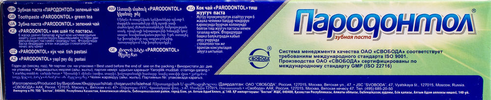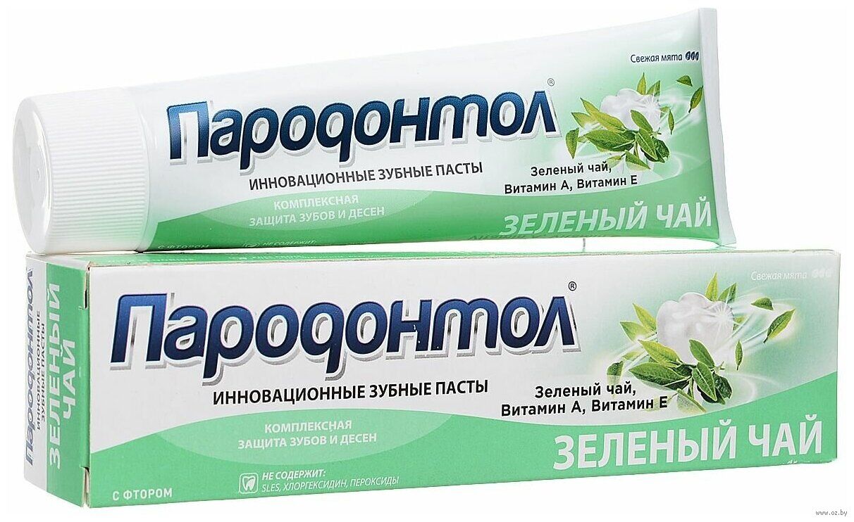 Зубная паста "Пародонтол" с экстрактом зеленого чая, фтором, витаминами А и Е защищает от пародонтоза и кариеса. Она содержит весь комплекс природных биологически-активных веществ, которыми богат зеленый чай, а также витамины А, Е и активный фтор.