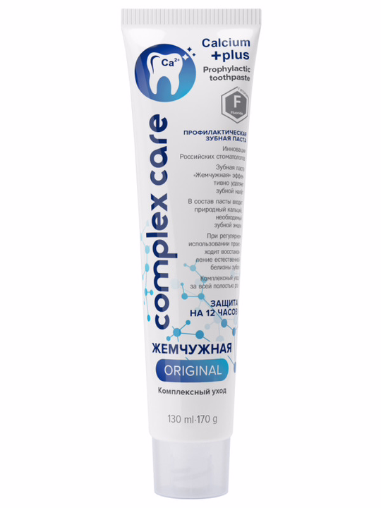 Профилактическая зубная паста "Комплексный уход" отлично очищает, бережно отбеливает и полирует эмаль. Содержит специальный комплекс микроэлементов, укрепляющих зубную эмаль и являющихся надёжной защитой от кариеса.