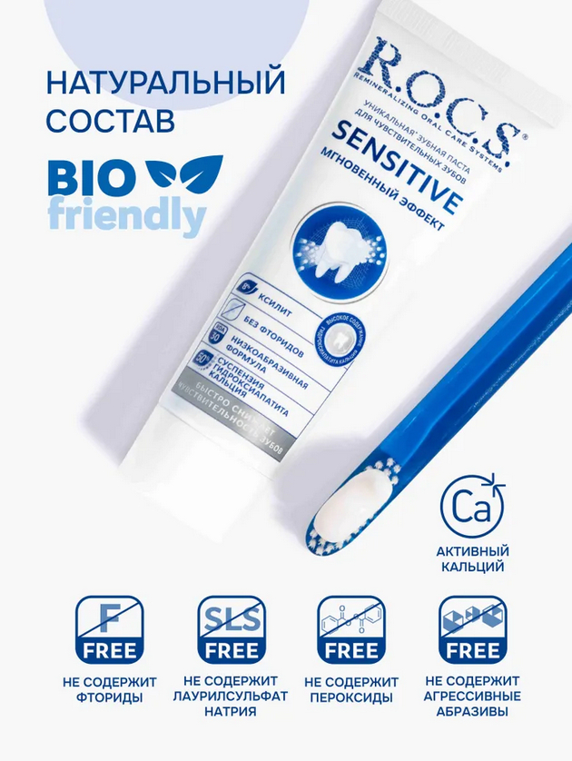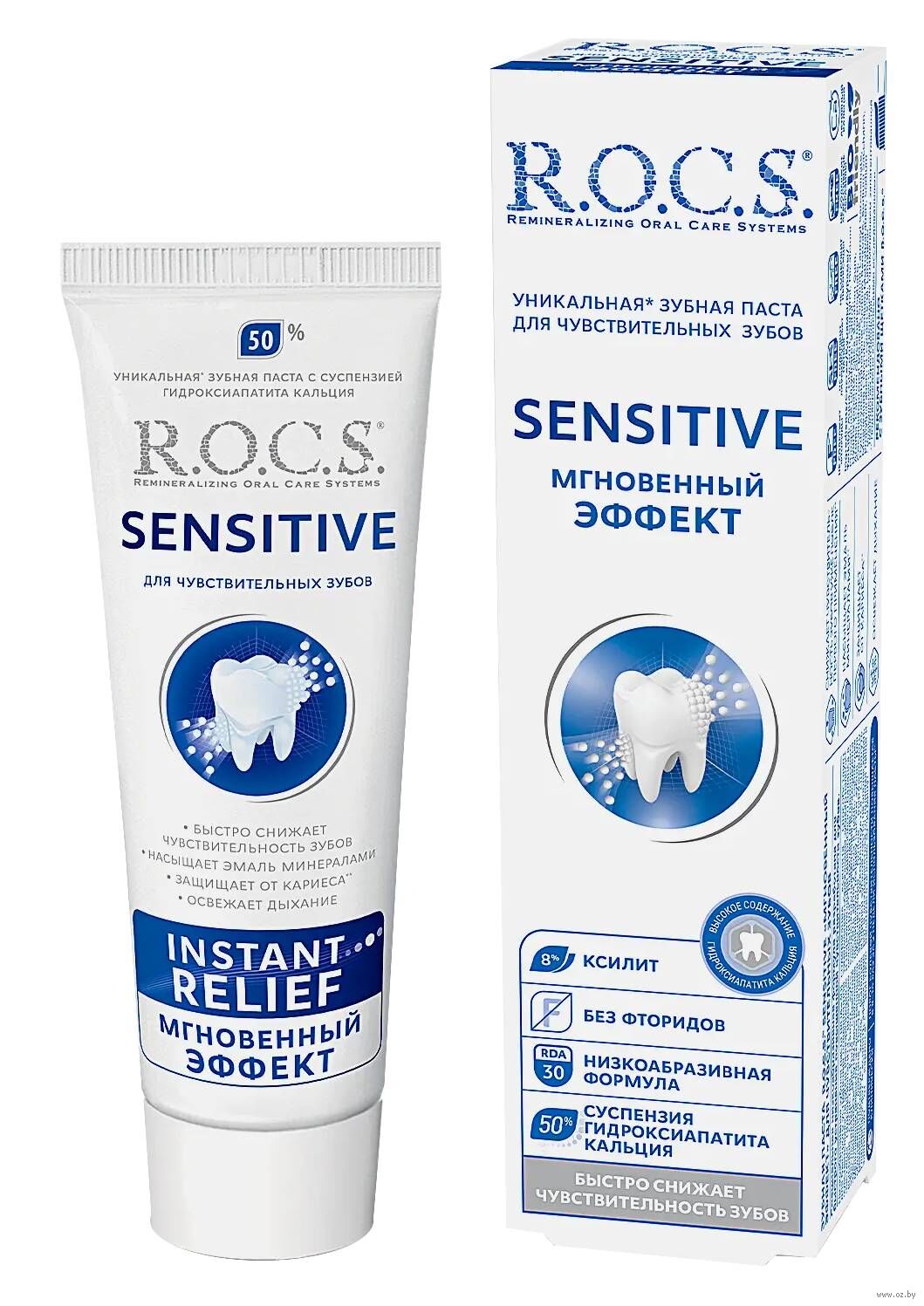 3убная паста R.O.C.S "Sensitive. Мгновенный эффект" – надежное решение для моментального устранения повышенной чувствительности зубов и ухода за деснами.