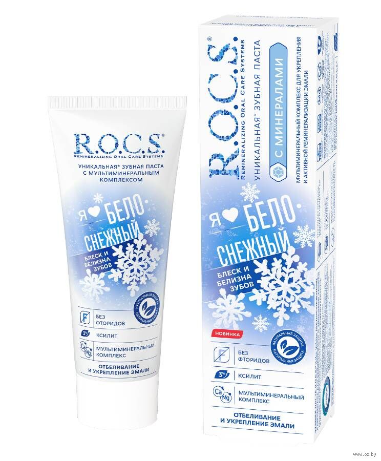 Уникальная зубная паста с минералами R.O.C.S. "iLIKE White" (белоснежный) разработана для белоснежной и здоровой улыбки и сочетает в своем составе два механизма отбеливания: реминерализация и интенсивная полировка.