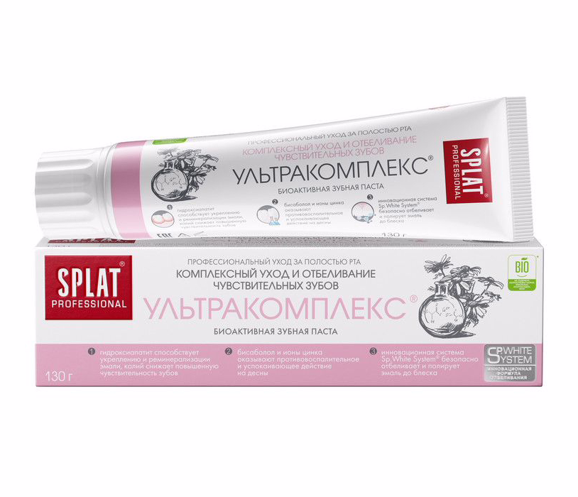 Зубная паста "Ультракомплекс" разработана для комплексного ухода за чувствительными зубами и их бережного отбеливания.