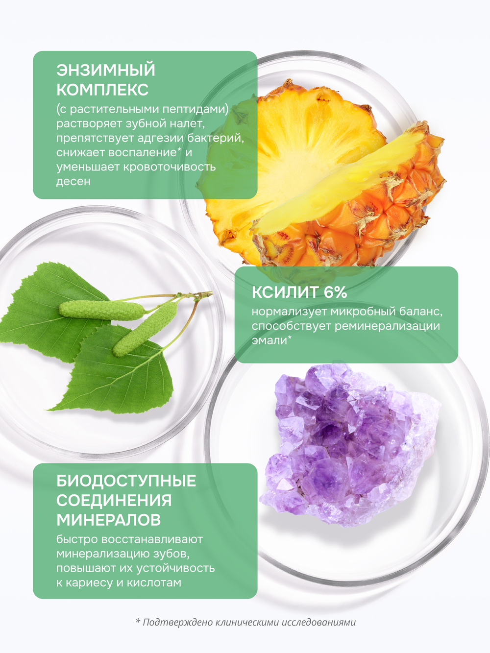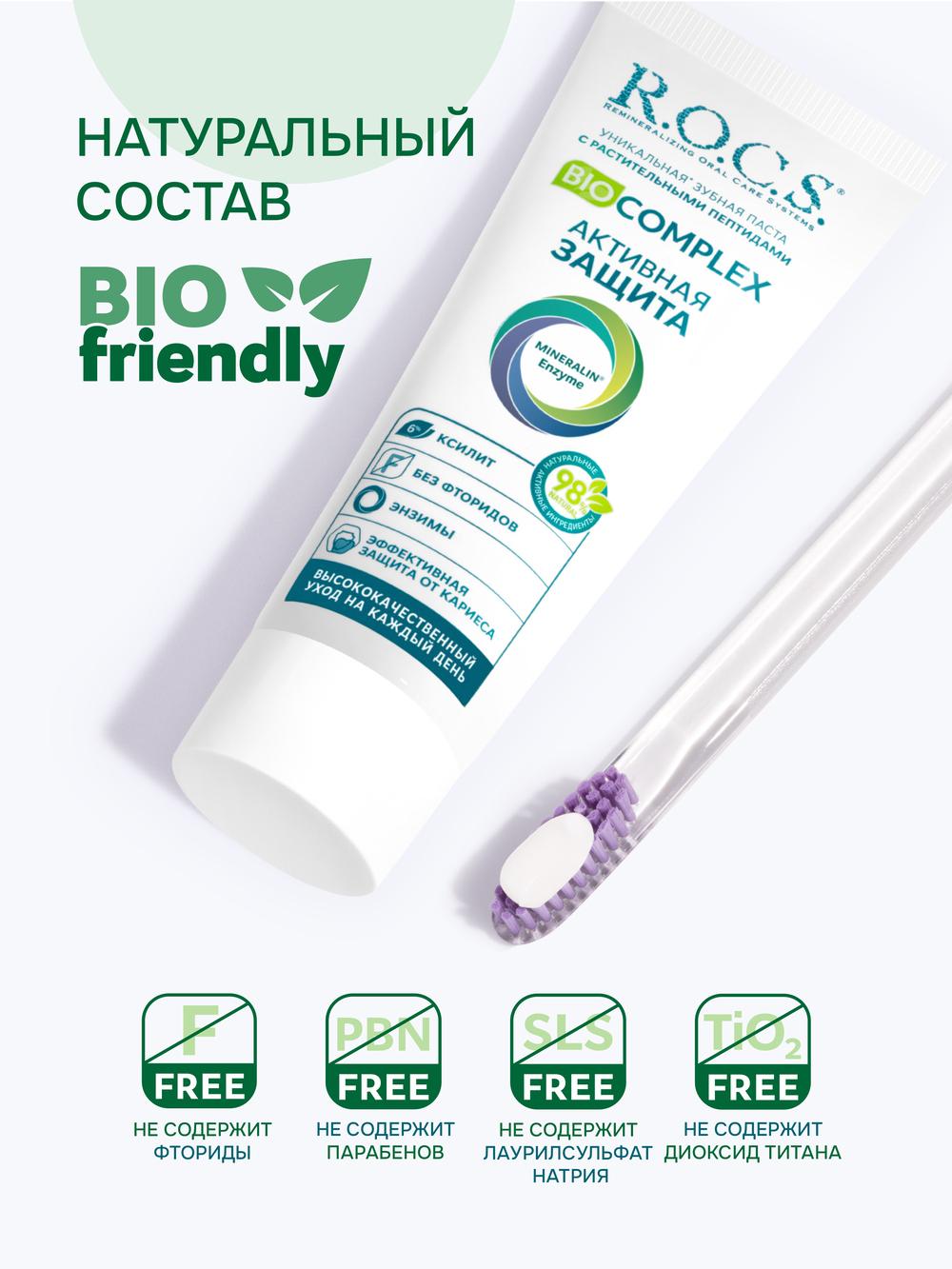 Разработана для комплексной защиты зубов и десен. Состоит из 98% из компонентов природного происхождения. Содержит запатентованный комплекс Mineralin® Enzyme на основе растительных пептидов, ксилита и минералов.