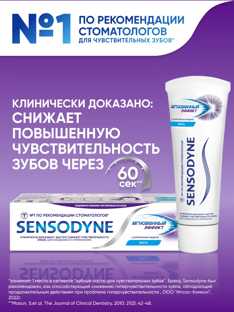 Зубная паста "Мгновенный эффект", благодаря уникальной формуле, способствует защите чувствительных участков зубов. Обеспечивает облегчение боли и постоянную защиту при каждой чистке зубов.