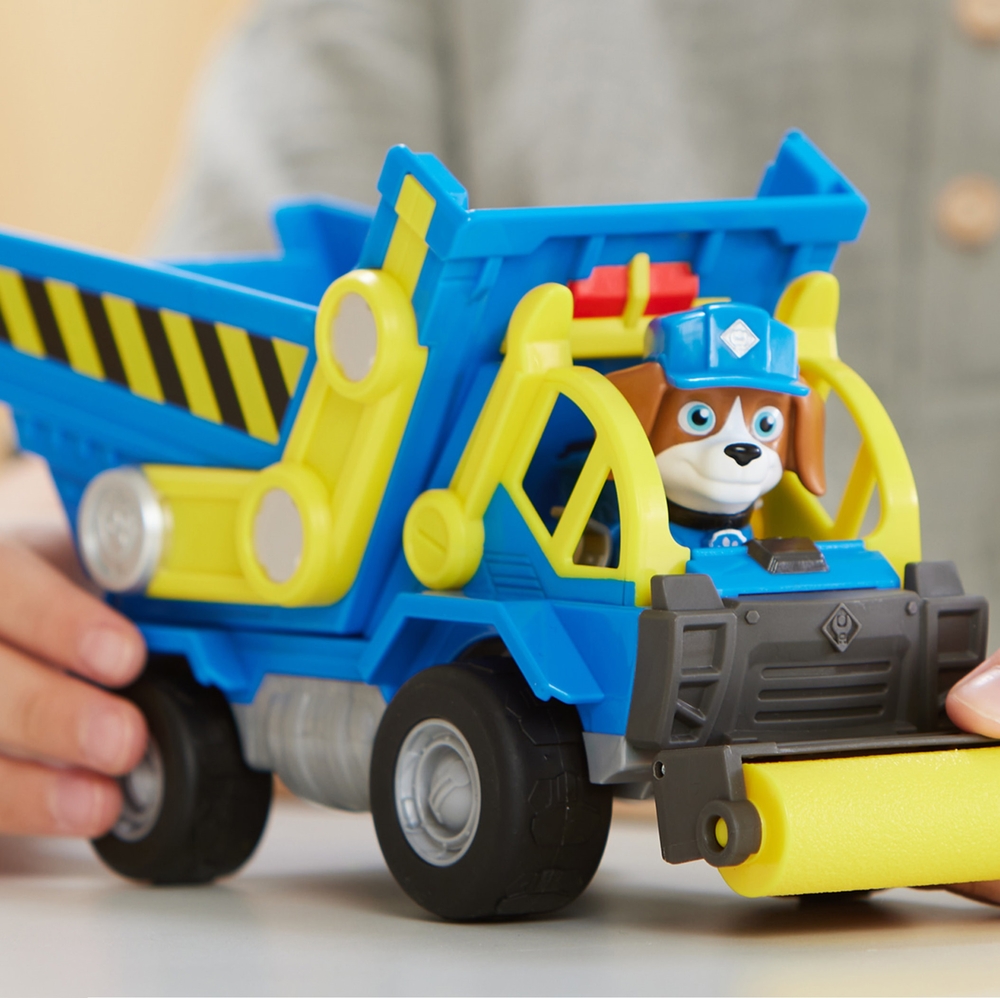 В набор входит щенок Уилер в форме строителя и его самосвал с подвижными колесами и кузовом. Посади Уилера в самосвал и перевози песок и другие тяжелые грузы!