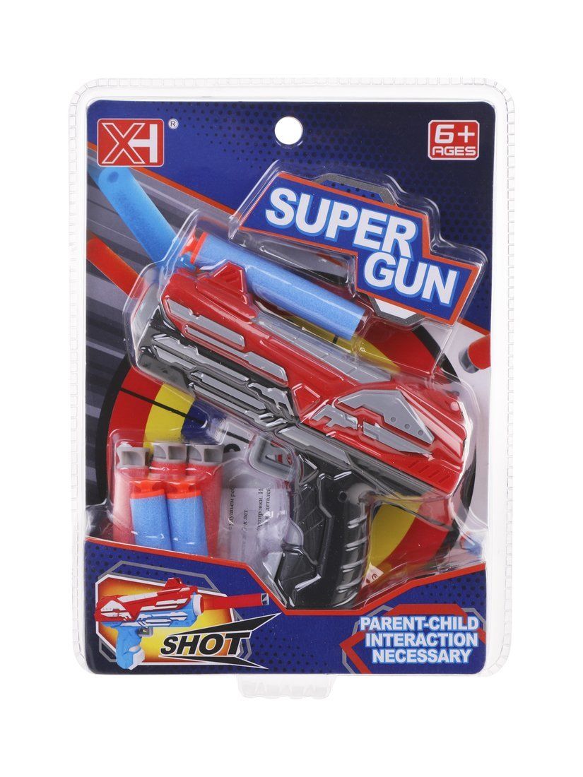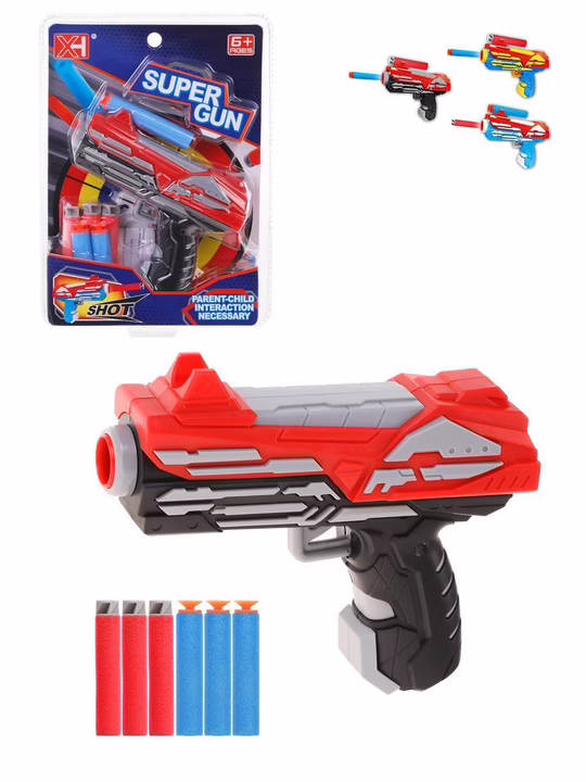 Игрушечный бластер, стреляющий мягкими патронами – один из самых безопасных видов детского оружия. В комплекте прилагаются боеприпасы в количестве 6-ти штук, которые поочерёдно устанавливаются в дуло игрового оружия. Выстрел осуществляется нажатием на курок.