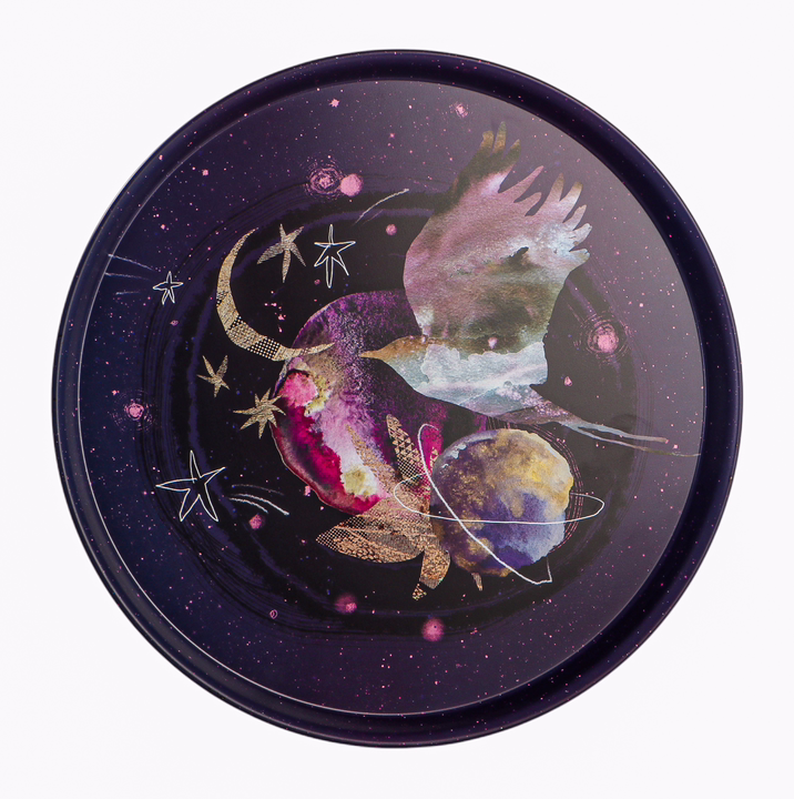 Круглый металлический поднос. Используется для переноса и хранения каких-либо предметов и сервировки стола.