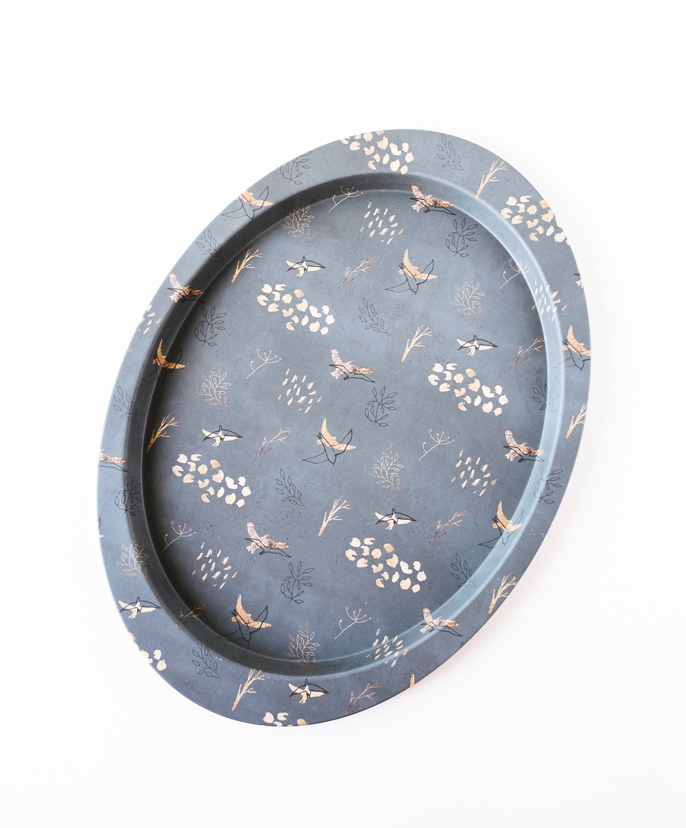 Круглый металлический поднос. Используется для переноса и хранения каких-либо предметов и сервировки стола.