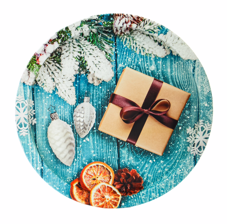 Поднос металлический "Новогодний подарок" (282х282х16 мм)