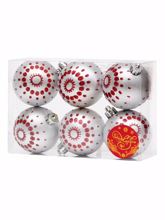 Набор ёлочных шаров "Серебряный с красными точками" (6 шт.)