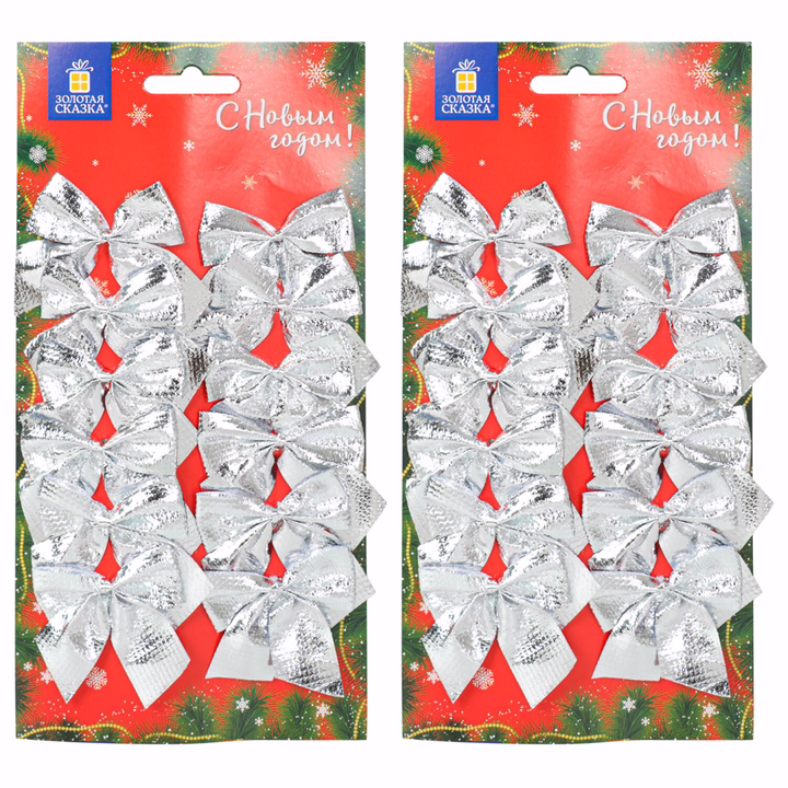 Набор ёлочных украшений "Бантики" (24 шт.; серебристые)
