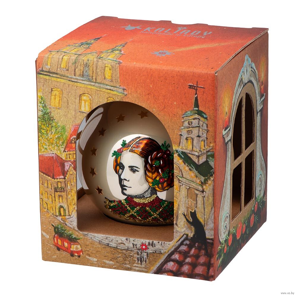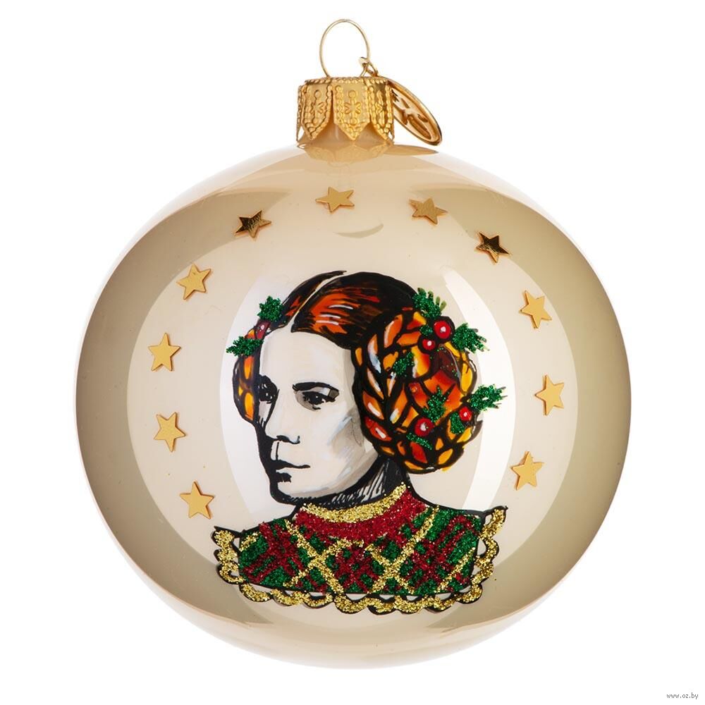 Красивый шарик! Хорошая задумка с белорусскими писателями! Стеклянный шар упакован в коробку из плотного картона. Станет отличным украшением на ёлке :)