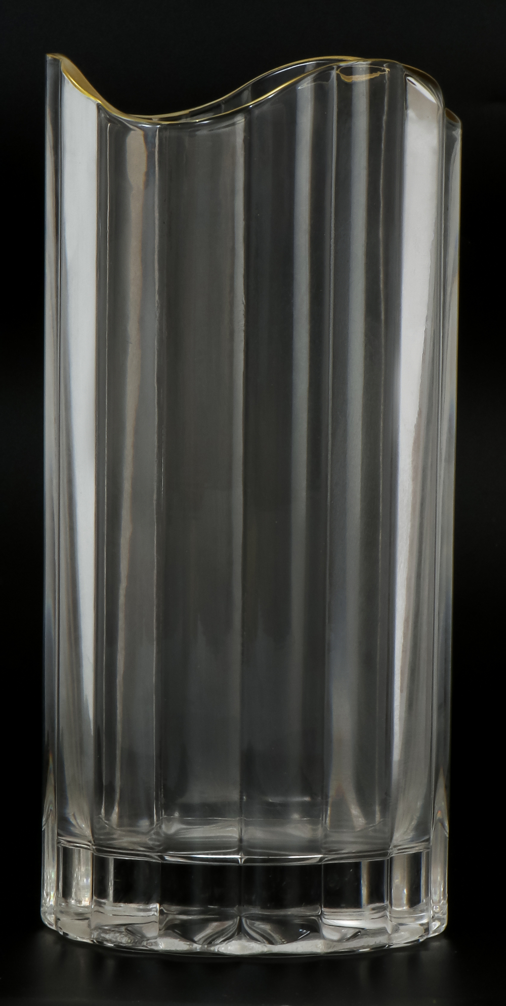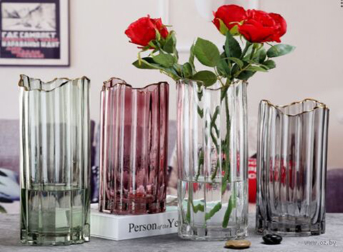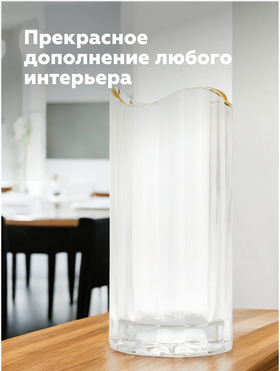 Прозрачная стильная стеклянная ваза "в рубчик" для растений и декора.