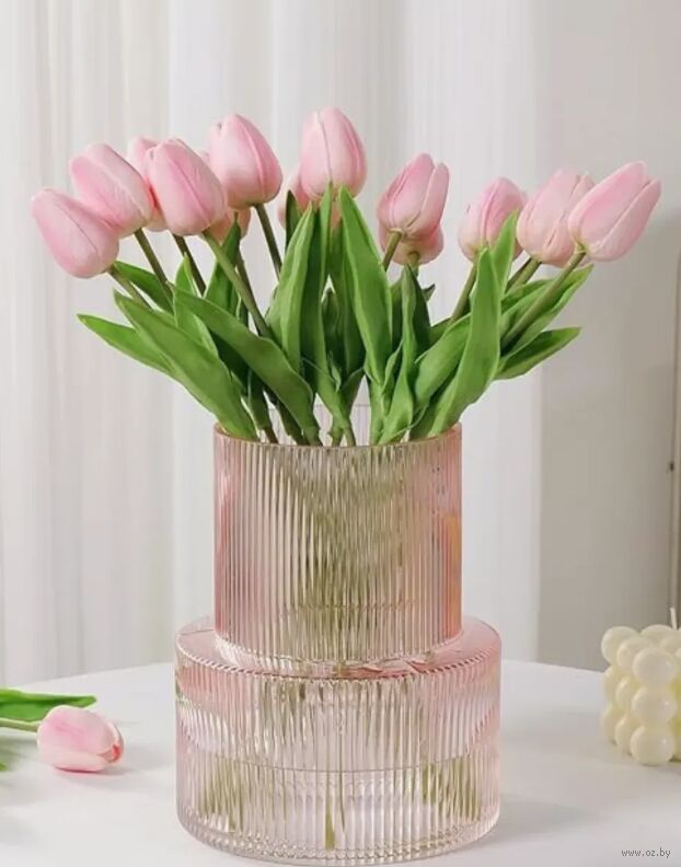 Изящная прозрачная ваза, создающая эффект хрустального кружева. Подчеркивает красоту живых цветов, добавляя интерьеру романтичный акцент.