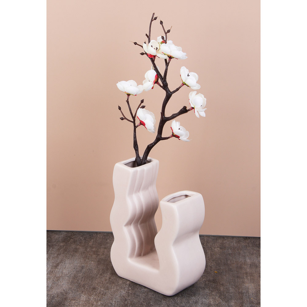 Декоративная ваза из прочной керамики станет стильным акцентом в любом интерьере. Лаконичная форма и универсальный бежевый оттенок гармонично сочетаются с различными стилями оформления – от классики до минимализма.