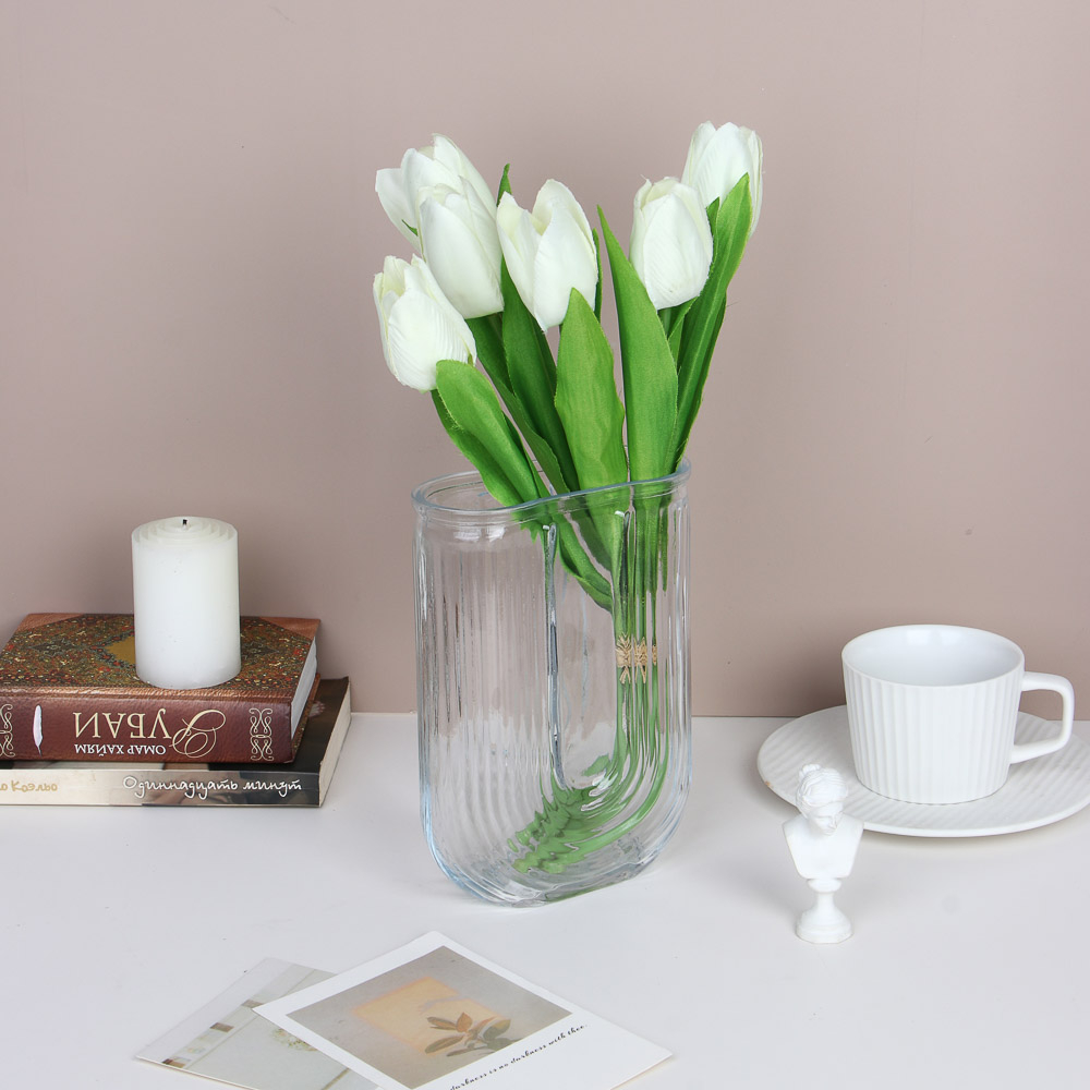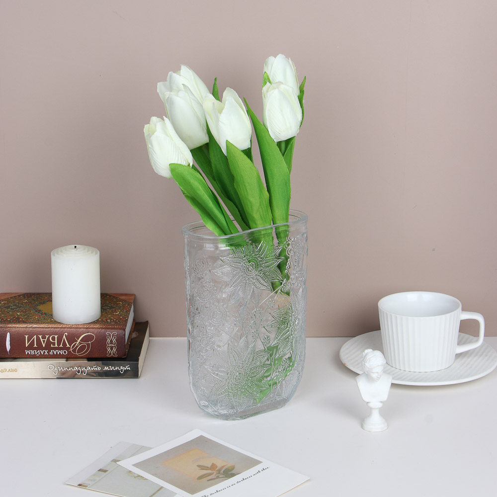Элегантная стеклянная ваза станет прекрасным дополнением к любому интерьеру. Благодаря универсальным размерам и прозрачному исполнению она гармонично впишется как в классический, так и в современный дизайн помещения.
