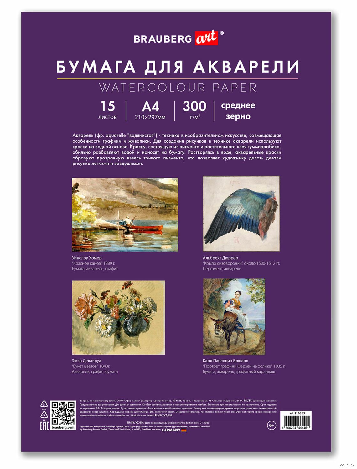 Бумага для акварели содержит набор листов, специально предназначенных для рисования всеми видами водорастворимых красок. Подходит как для профессионалов, так и для любителей.