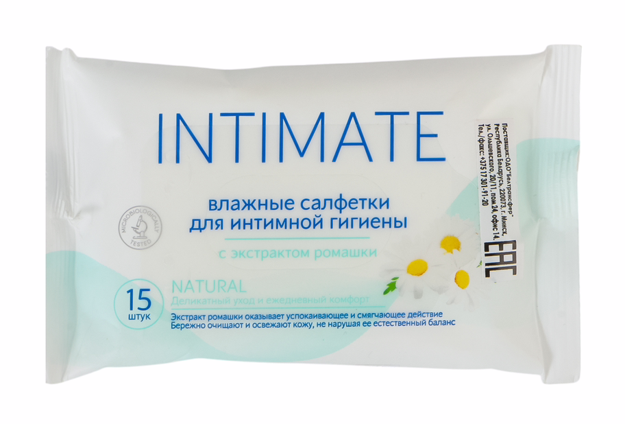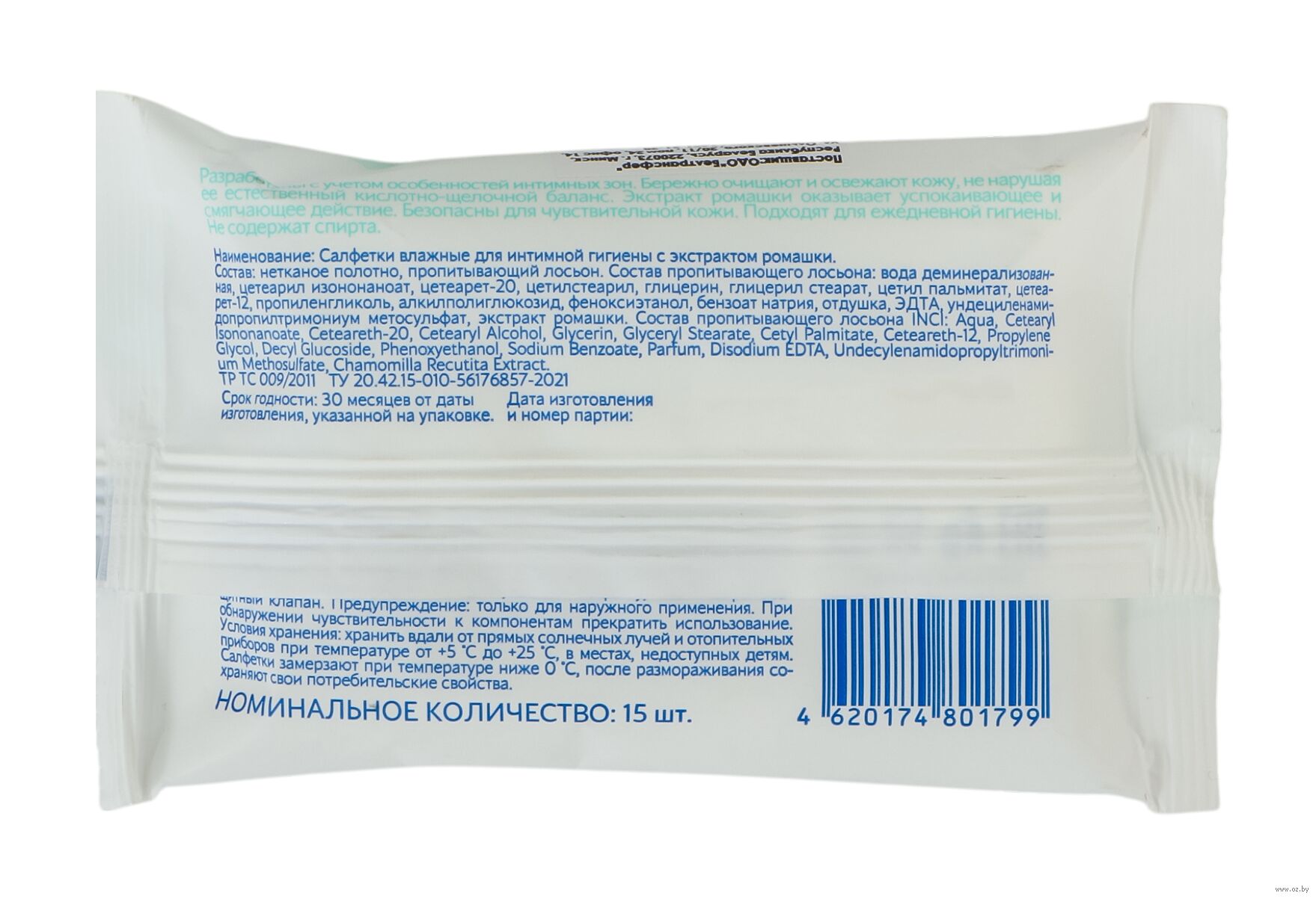Влажные салфетки "Для интимной гигиены с экстрактом ромашки" (15 шт.)