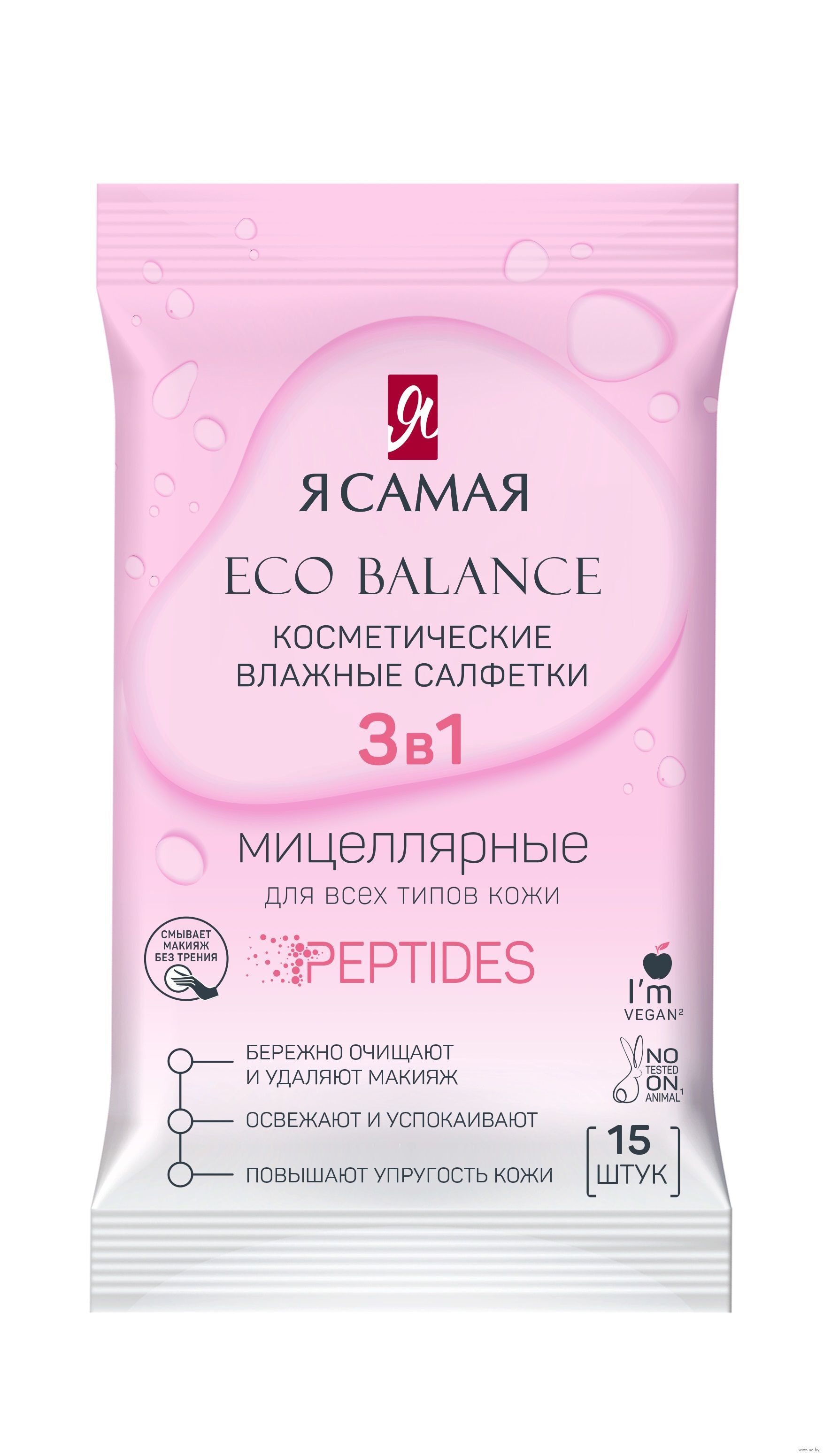 Влажные салфетки для снятия макияжа "Peptides" (15 шт.)