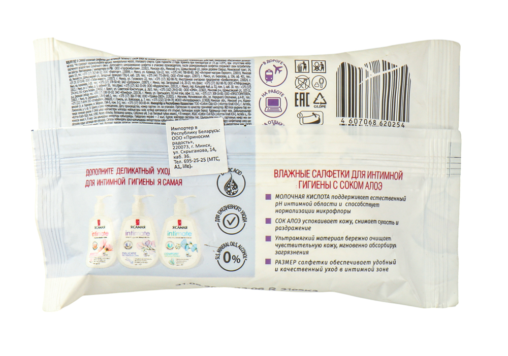 Влажные салфетки "Для интимной гигиены с алоэ" (15 шт.)