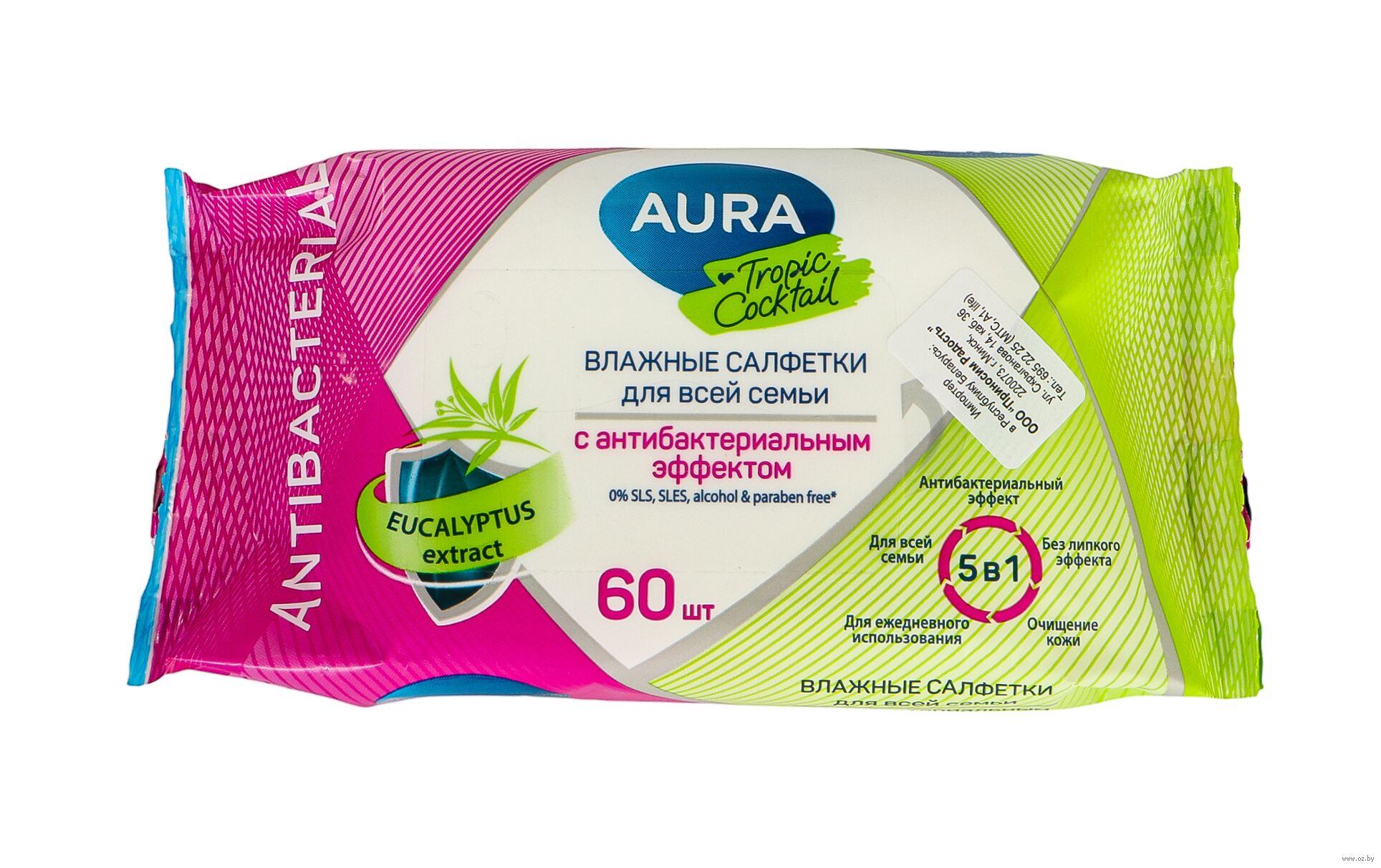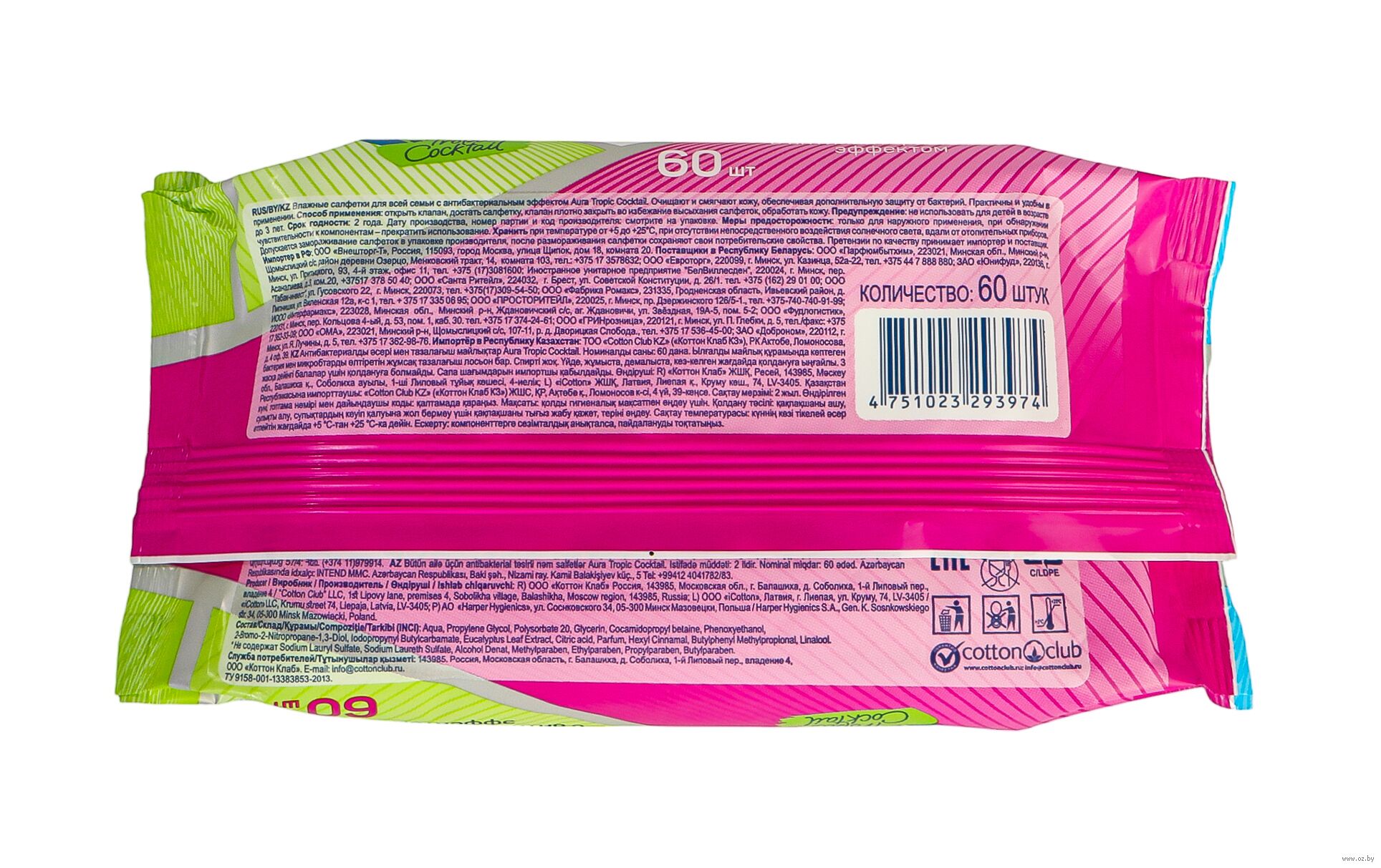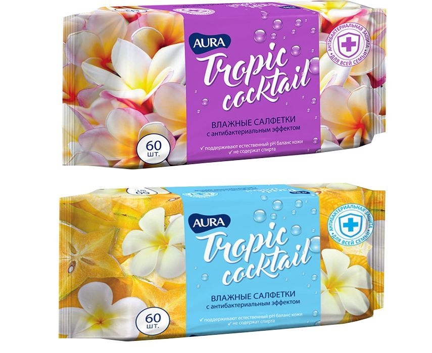 Влажные салфетки "Tropic Coctail. С антибактериальным эффектом" (60 шт.)