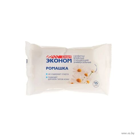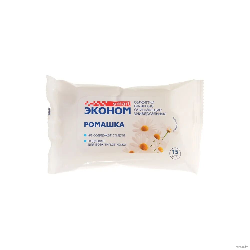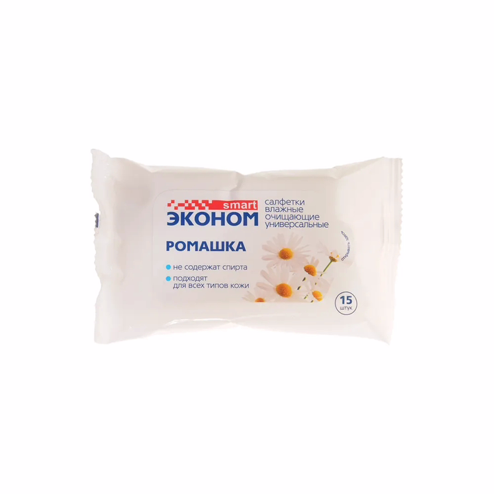 Влажные салфетки "Эконом Smart" с ароматом ромашки эффективно и бережно очищают кожу рук, оставляя длительное ощущение свежести и комфорта, где бы вы ни были: дома, на прогулке, в гостях.