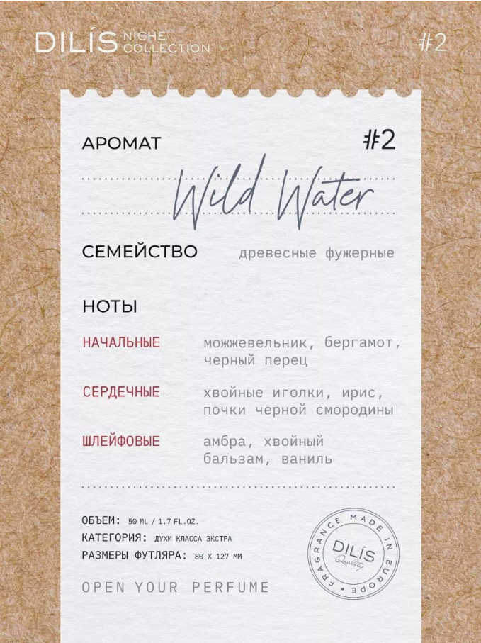 Вода стремительно несется вперед, обрывается и падает на дно глубоких ущелий. Ее непокорность и неподвластность нашли свое отражение в аромате Wild Water.