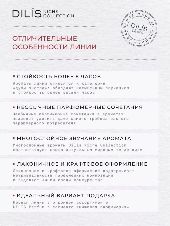 Завершающим аккордом становятся сладко-солоноватые нотки амбры и горечь ванили.