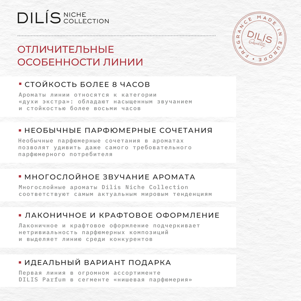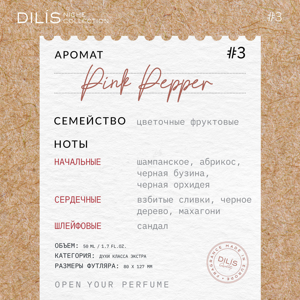 Дополняю свой отзыв. Парфюм отстоялся, я сделала к нему второй подход и он стал выдавать такой классный перец в сливках, и теперь стала чувствоваться шершавая кожица абрикоса , это так неожиданно и дорого звучит...Скажу , не ожидала от Дилис, такого раскрытия не ожидала. Не смотря на лёгкость с руки чувствую на второй день, вещи пахнут дня три.... заказала ещё один парфюм из этой коллекции wilde water, жду его как приятный сюрприз)