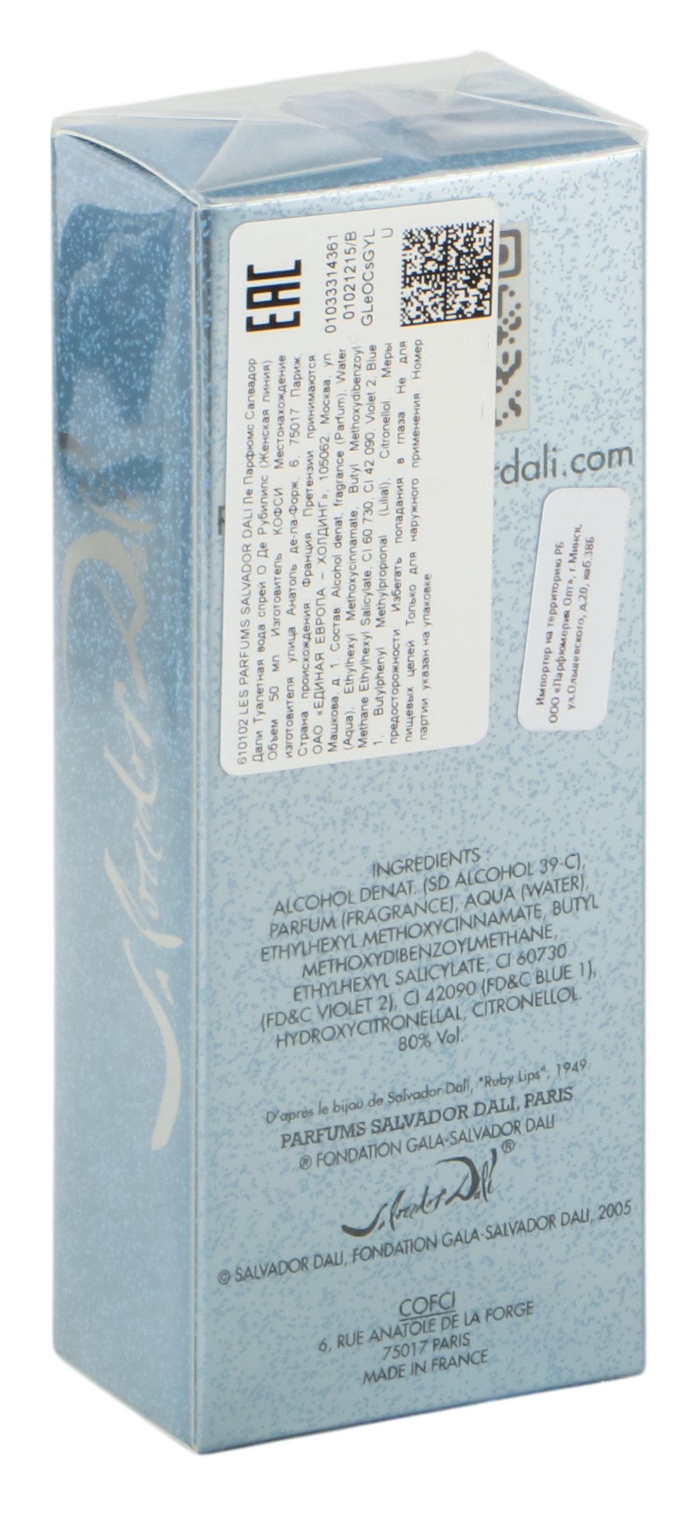 Создан аромат Salvador Dali "Eau De Rubylips" парфюмером Michel Almairac в 2005 году.