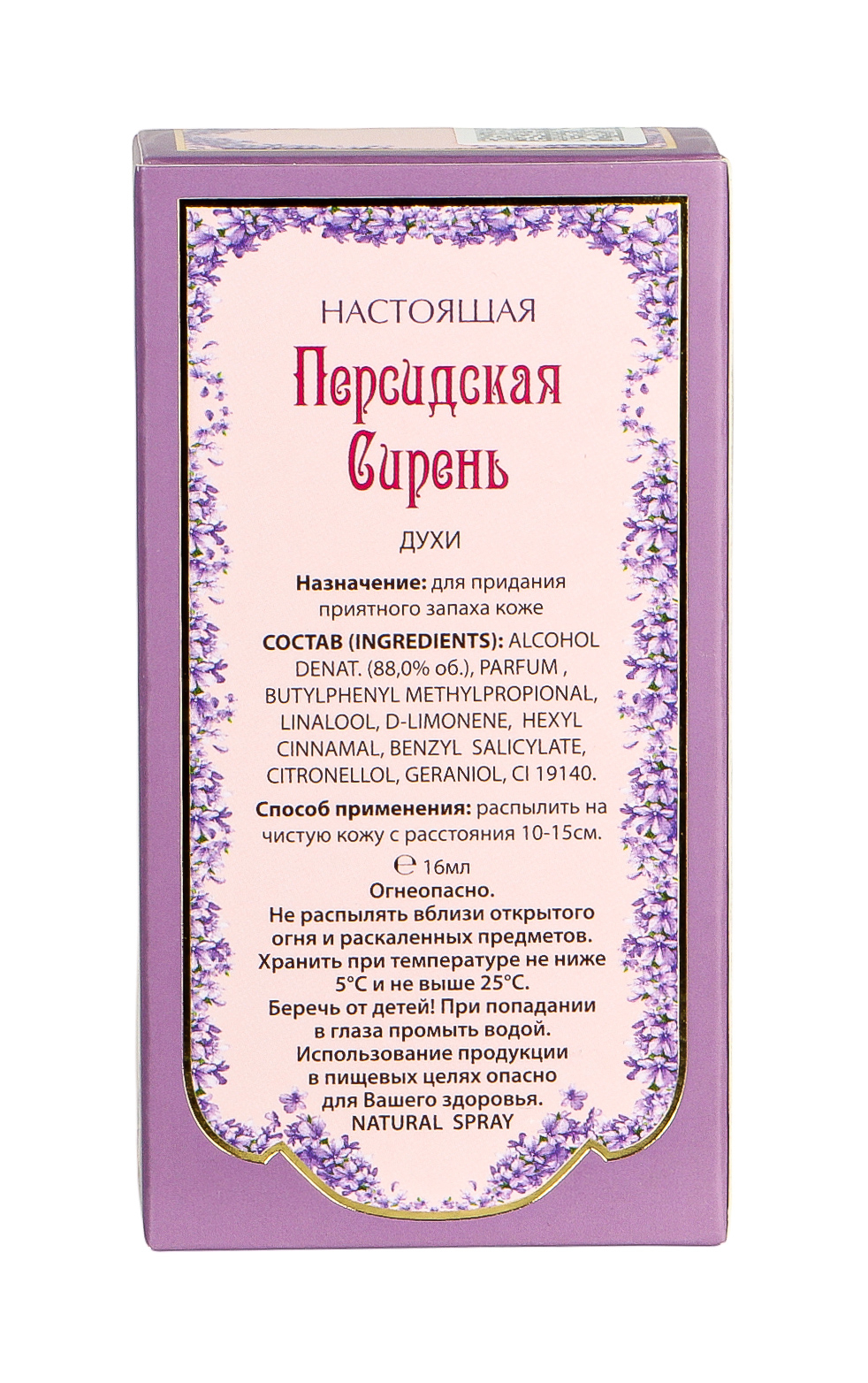 Аромат "Настоящая персидская сирень" – нежный, женственный, мечтательный, изящный аромат позволит немного продлить такое прекрасное время года как весна. Запахом сирени хочется наслаждаться в любое время года. Он дарит своей обладательнице уверенность в себе, хорошее настроение, чувство легкости и, конечно внимание мужчин.