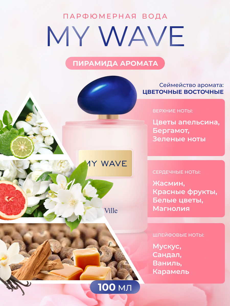 "My Wave" – это чувственная современная композиция для женщин, которые стремятся следовать своему пути. Аромат вдохновлен духом путешествия и новых возможностей.