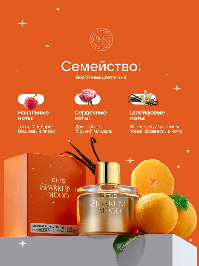 Sparkling Mood – это не просто аромат: он помогает превращать обычные мгновения в волшебные события, вдохновляя на яркие свершения и наполняя каждый день новыми эмоциями и светом.