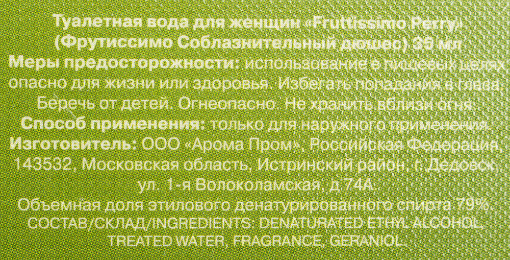 | Изготовитель | ООО "Арома Пром", Россия, 143532, Московская область, город Дедовск, улица 1-я Волоколамская, дом 74 А |