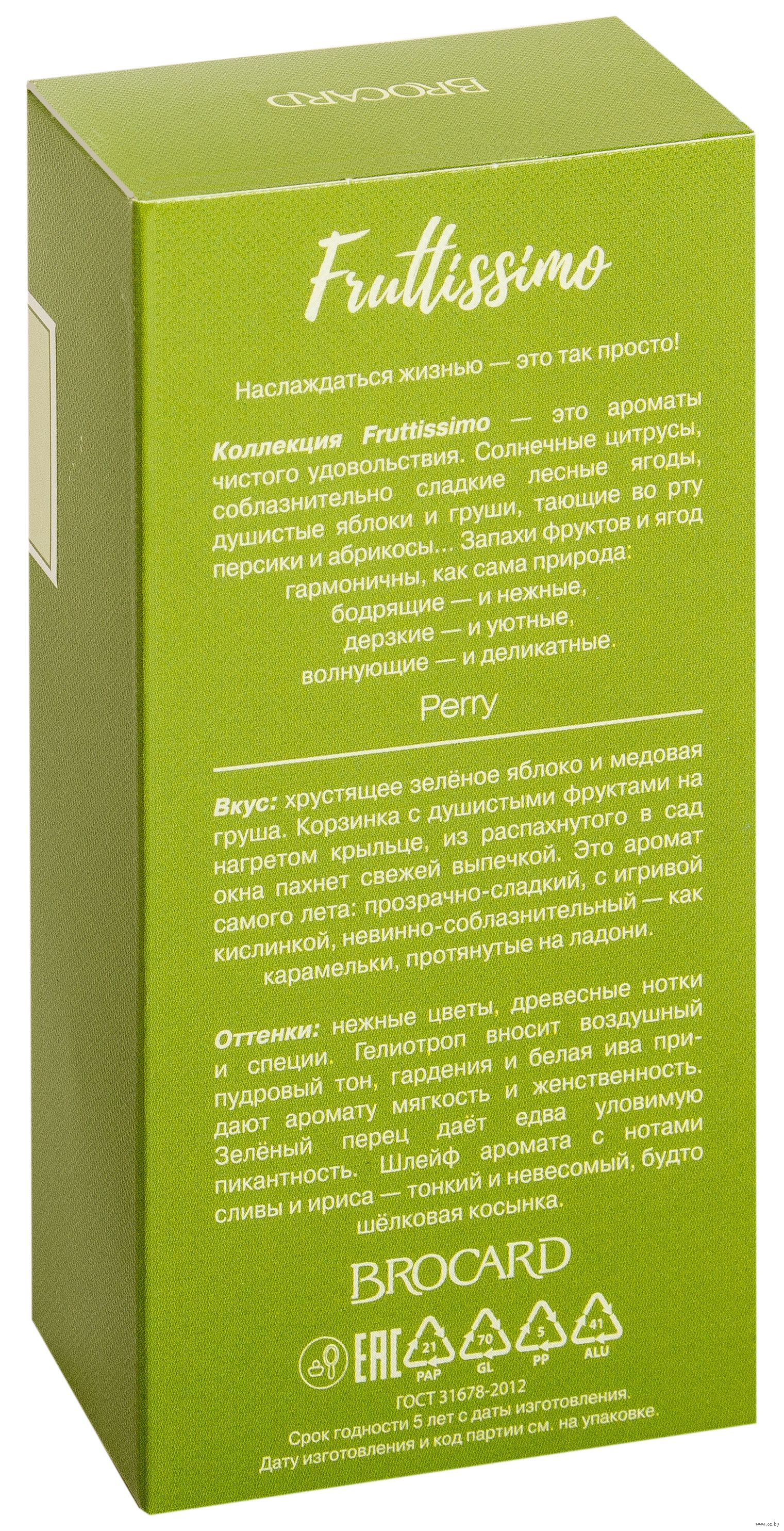 Ноты: хрустящее зелёное яблоко и медовая груша. Корзинка с душистыми фруктами на нагретом крыльце, из распахнутого в сад окна пахнет свежей выпечкой. Это аромат самого лета: прозрачно-сладкий, с игривой кислинкой, невинно-соблазнительный, – как карамельки, протянутые на ладони.