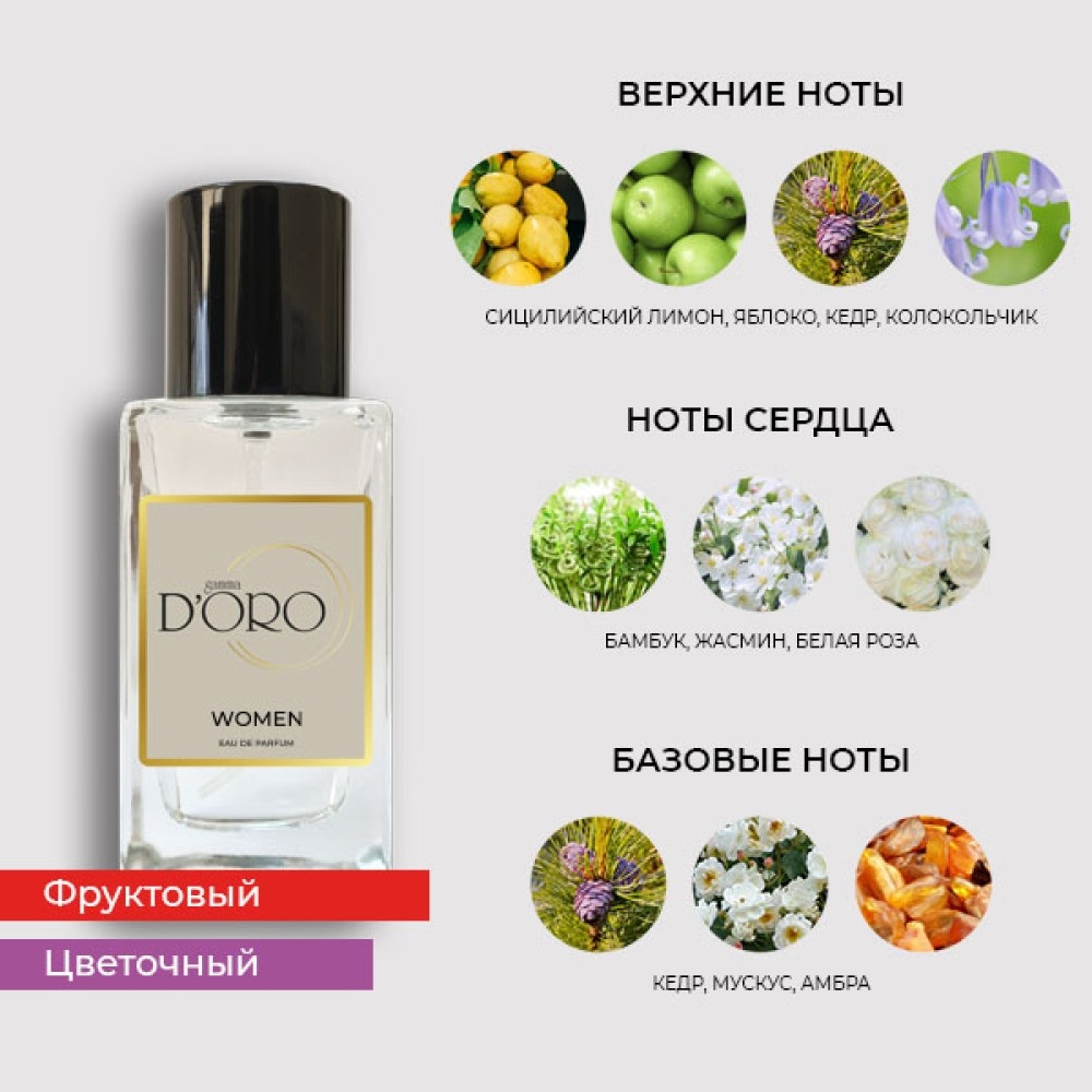 Верхние ноты: Сицилийский лимон, яблоко, кедр, колокольчик.