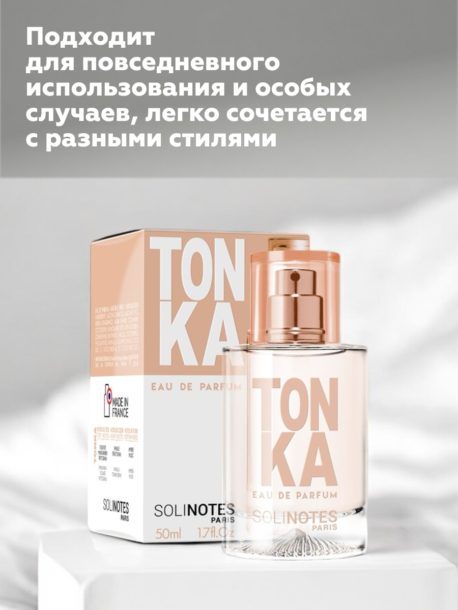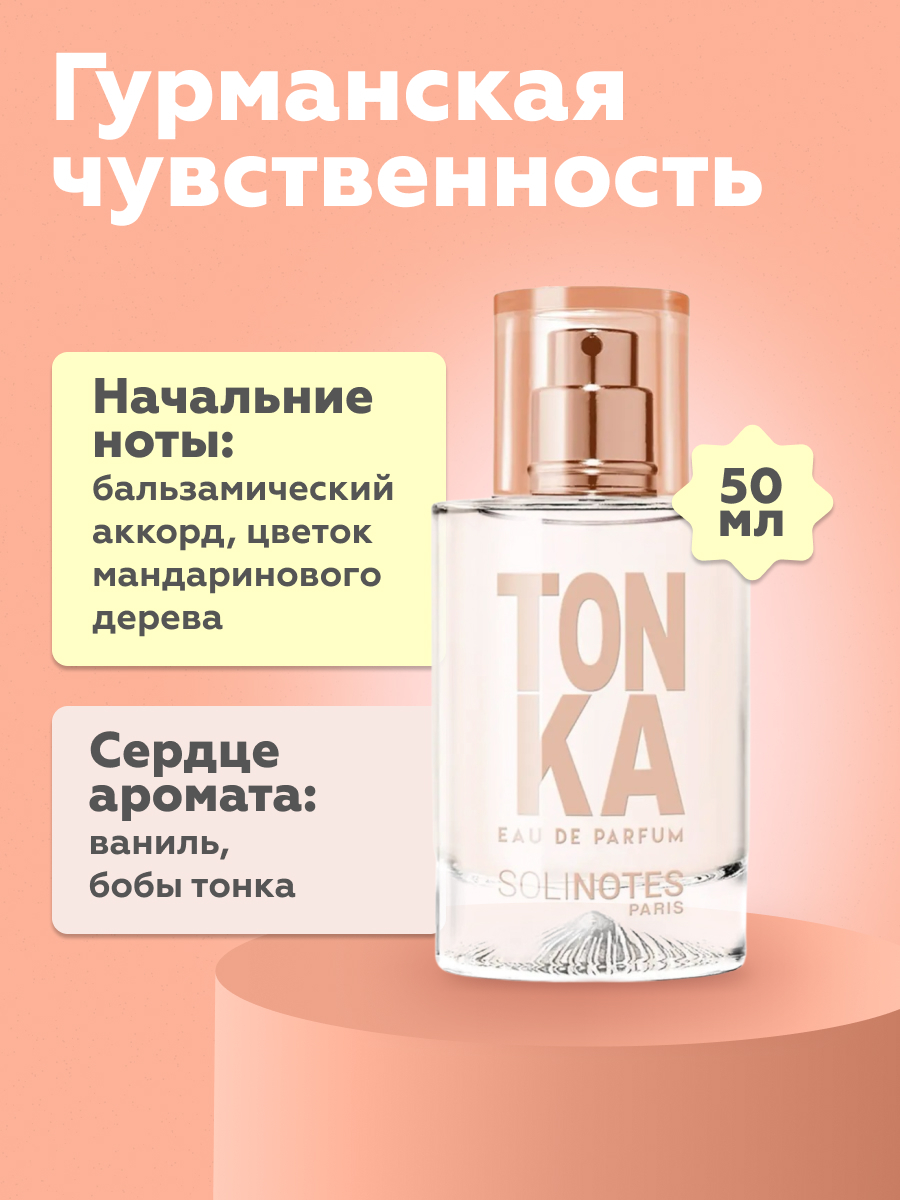 Родом из Бразилии и Венесуэлы, бобы тонка известны своим пудровым, ванильным ароматом, к которому присоединяются удивительные ноты шоколада и грецкого ореха. Парфюмеры используют ноту бобов тонка, чтобы сгладить и смягчить композицию. Гурманский, с нотами миндаля, Tonka от Solinotes раскрывает свою чувственность через пленительные восточные аккорды.