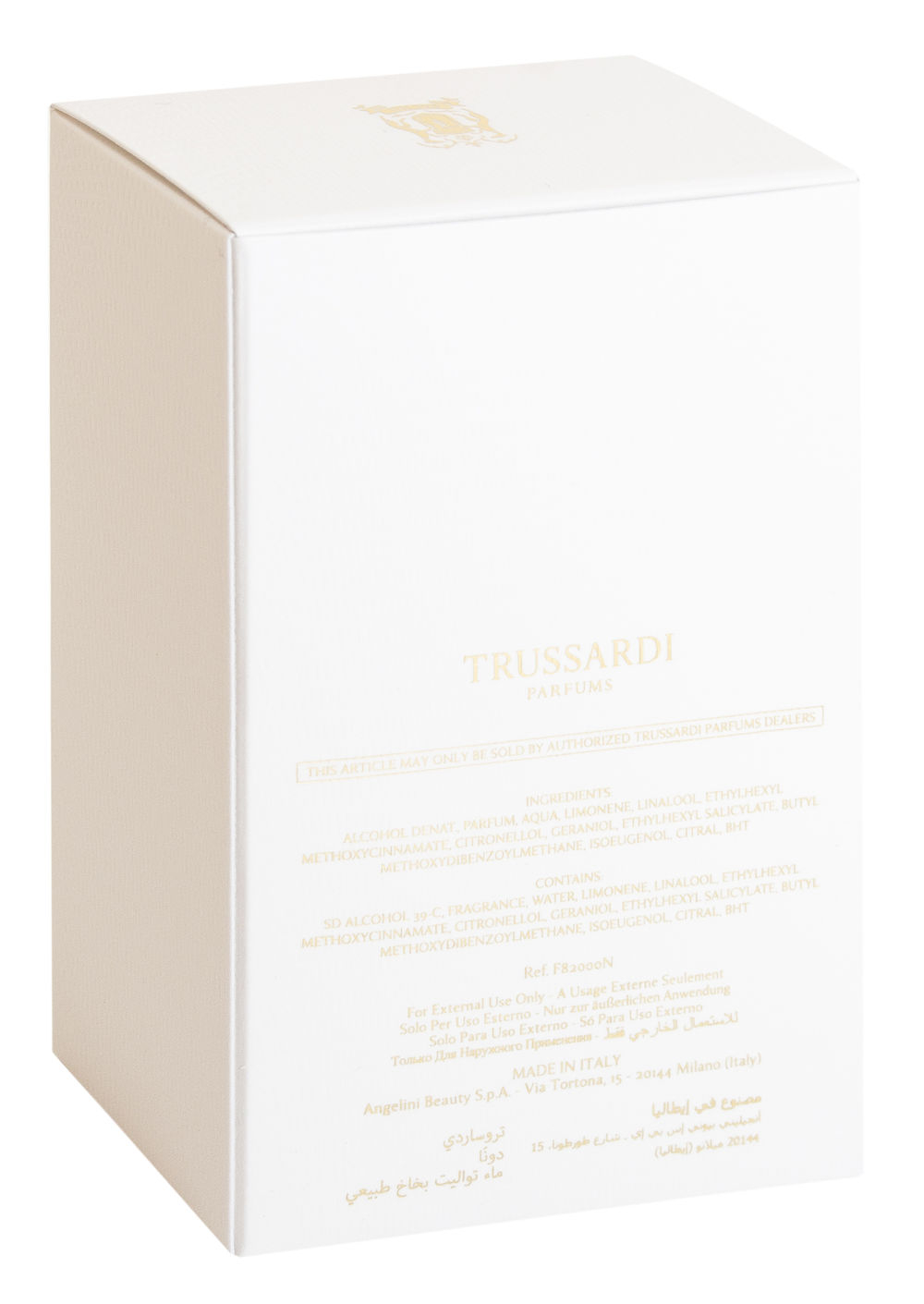 Аромат от модного Дома Труссарди создан для современных, эффектных и роскошных женщин. Композиция относится к семейству ориентально-цветочных ароматов. Аромат Trussardi "Donna" 2011 соединил в себе динамичную свежесть цитрусовых с утонченной чувственностью изысканных цветов – лотоса, мадагаскарского жасмина, цветущего апельсинового дерева. Сочный и насыщенный аромат "Donna" 2011 раскрывается и фруктовыми нотами, дополненными экзотическим юдзу. Базовые ноты композиции составляют сладкая ваниль, элегантные древесные оттенки кедра и сандала и нежные пачули.