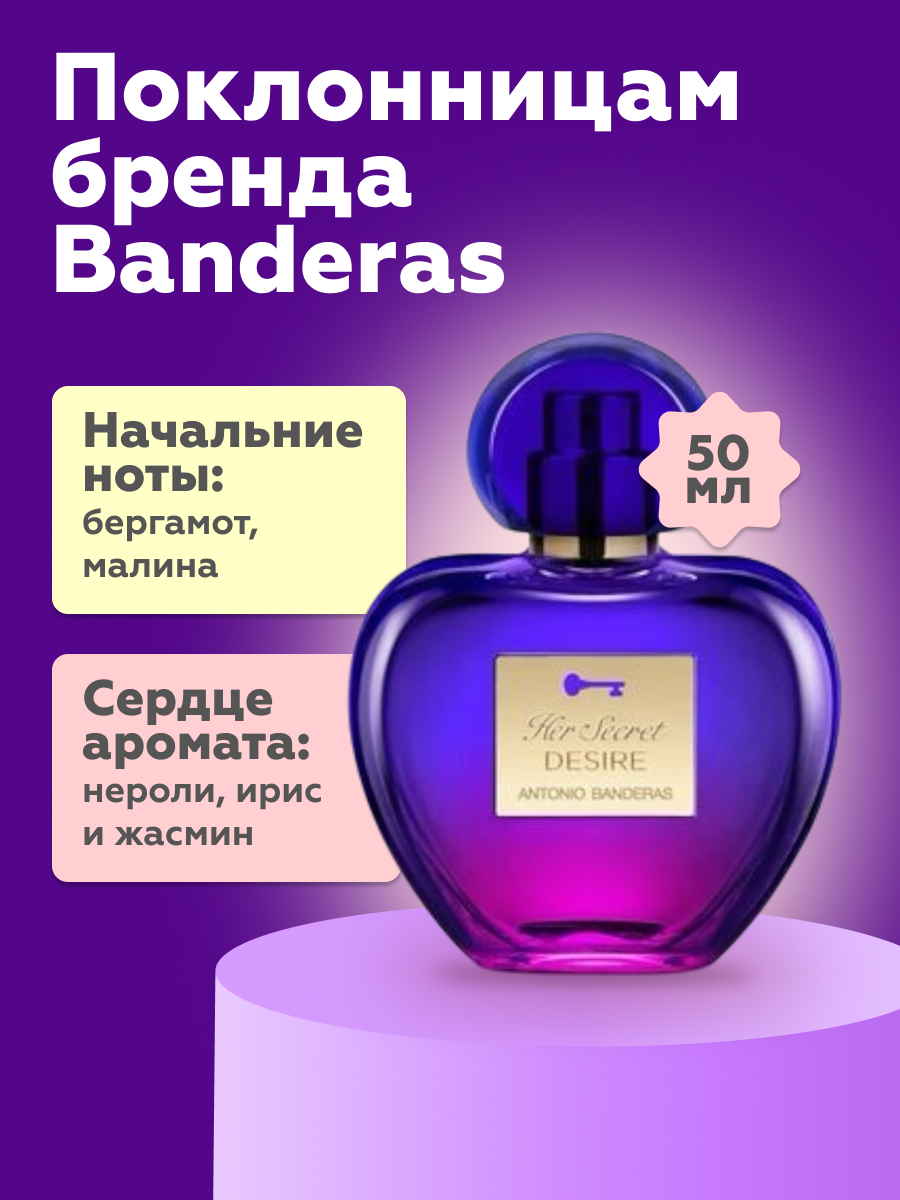 Антонио Бандерас представляет Her Secret Desire, парфюмерное творение, которое стало неотъемлемой частью вселенной ароматов The Secret. Женский аромат, в котором соблазн раскрывает чувства и открывает эту самую сокровенную тайну – ваши самые глубокие, самые тайные желания… Путешествие чувств начинается с цитрусового взрыва бергамота и сочной малины. Чтобы чувства обострились до максимума, в основу аромата добавили цветочный букет из жасмина самбак и нероли. Ирис, окутанный в сладостную древесину сандала и бальзамической ели, таит в себе ноты бархатистой ванили.