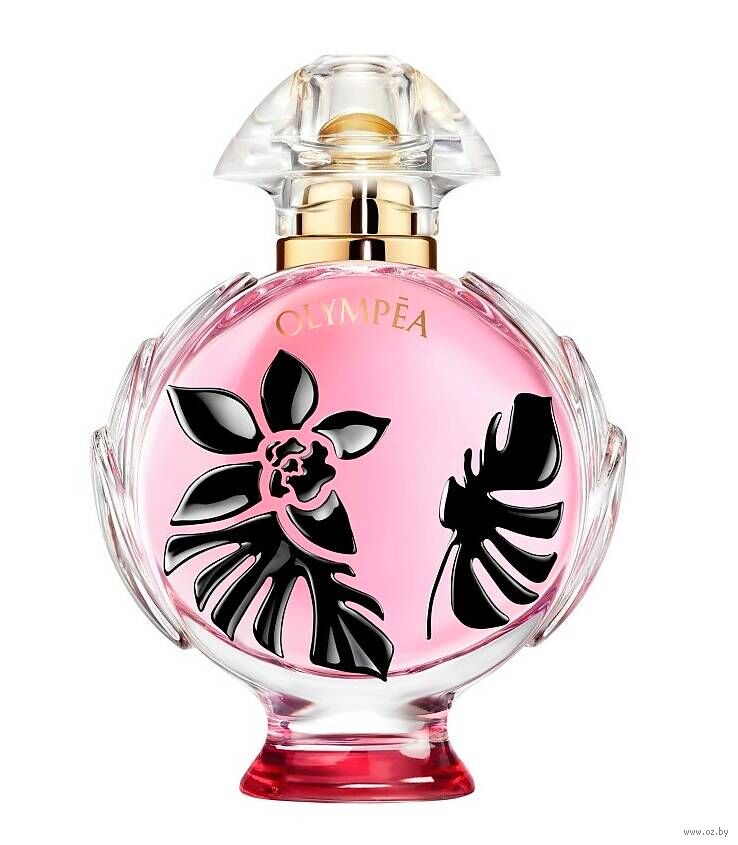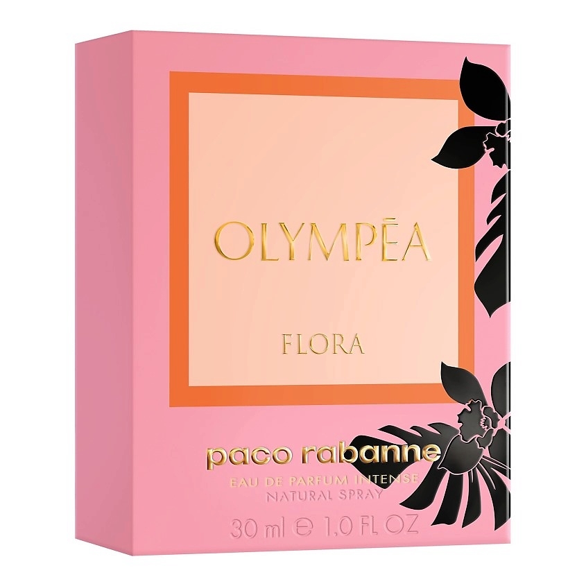 Силуэт черной орхидеи и тропических листьев украшает роскошный стеклянный флакон, отсылая к знаковой гурманской ноте ванили в классической "Olympea".