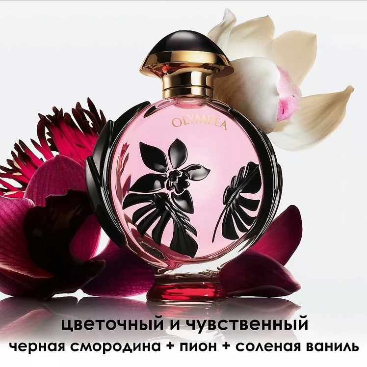 Чарующее цветочное сердце "Olympea Flora" из благоухающих свежих роз и пионов окроплено игристым розовым перцем – таким же острым, как шипы роз. Восхитительный сорбет из черной смородины усиливает фруктовые ноты пышного букета, окутанного соленой ванилью – фирменным аккордом "Olympea".