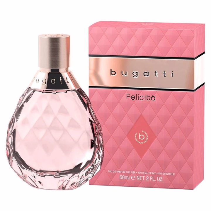 Bugatti Felicita представляет собой цветочную парфюмерную композицию, представленную в 2024 году немецким брендом Bugatti. Флакон Felicità, выполненный в форме капли, украшен рельефной надписью и увенчан матовым колпачком, что превращает его в изысканный объект, вызывающий эстетическое удовольствие и предвкушение уникального ольфакторного опыта.