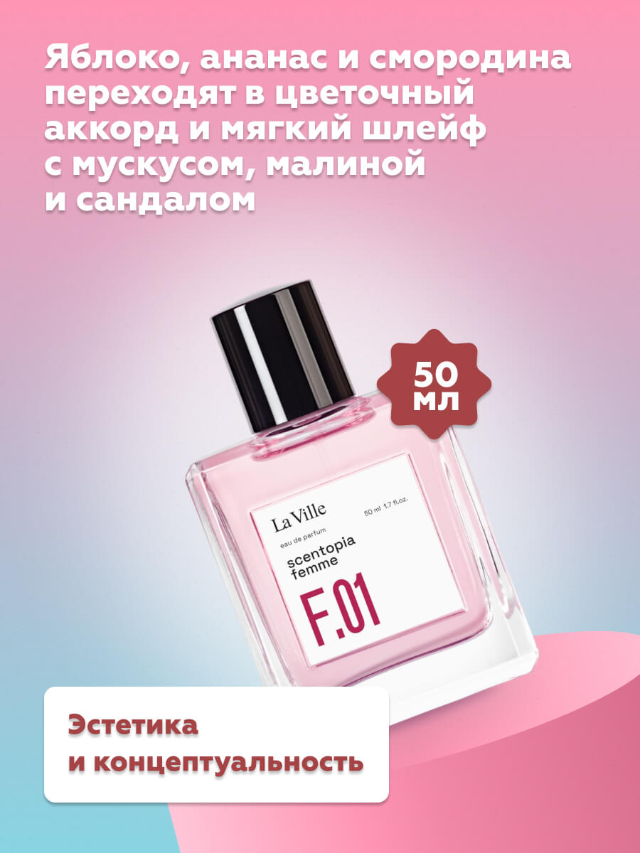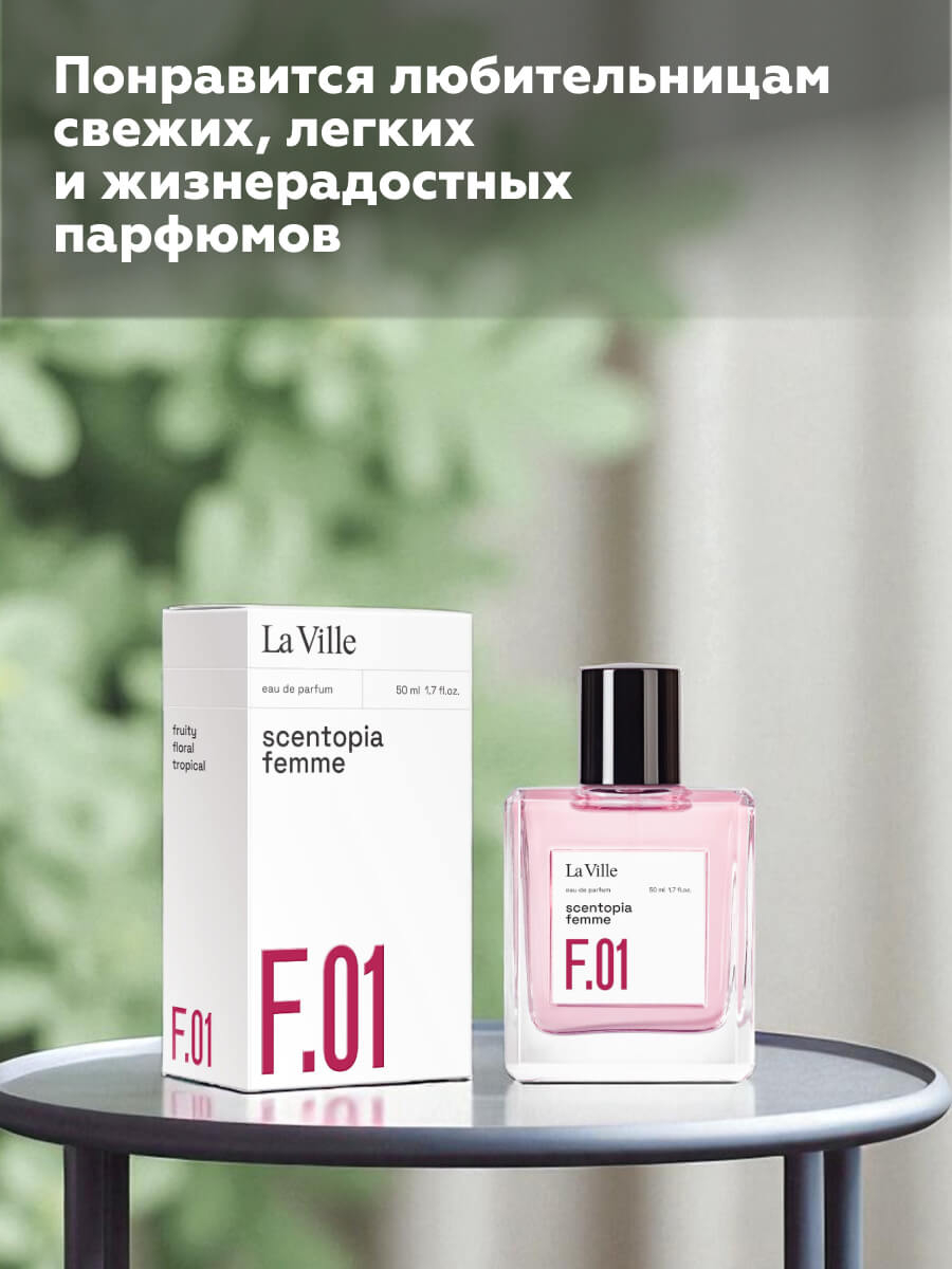 Scentopia F.01 – это совершенство в простоте, идеальная гармония между фруктовой свежестью и цветочной мягкостью, родившаяся в тропической утопии.